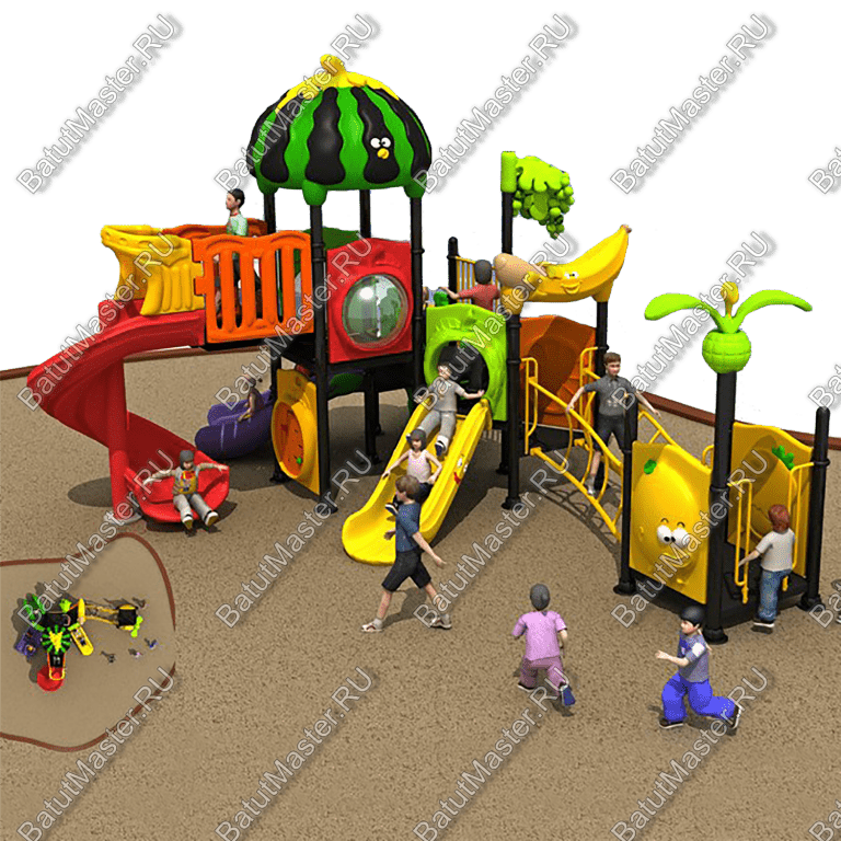 ✔ Яркий дизайн фруктов – привлекает внимание и делает детскую площадку центром притяжения.