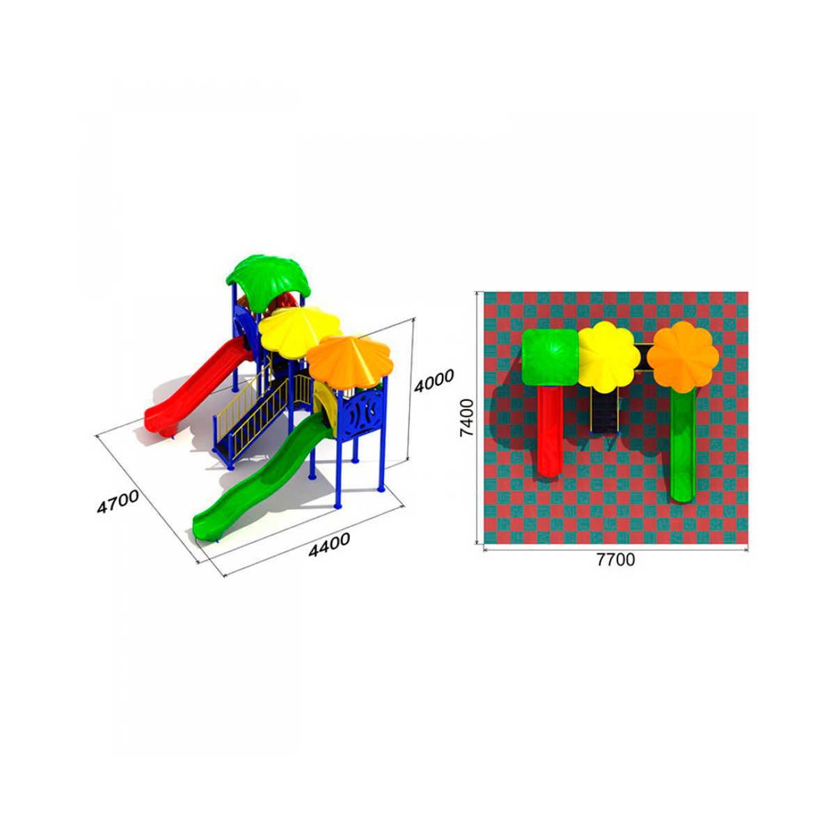 - Горки, крыши выполнены из пищевого полиэтилена низкого давления (ПНД), который не выгорает на солнце и сохраняет яркие цвета до 15 лет.
