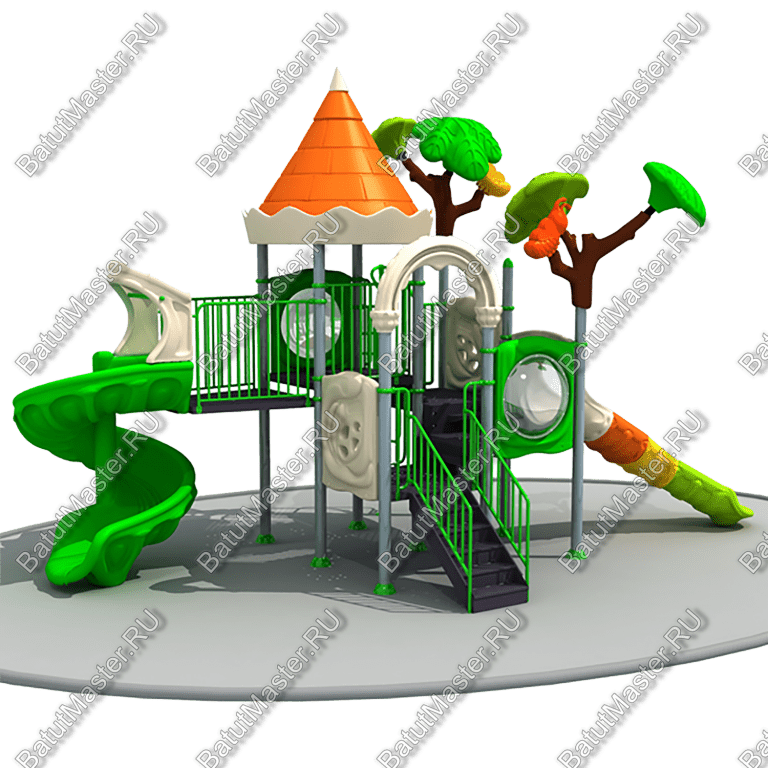 - Горки, крыши выполнены из пищевого полиэтилена низкого давления (ПНД), который не выгорает на солнце и сохраняет яркие цвета до 15 лет.