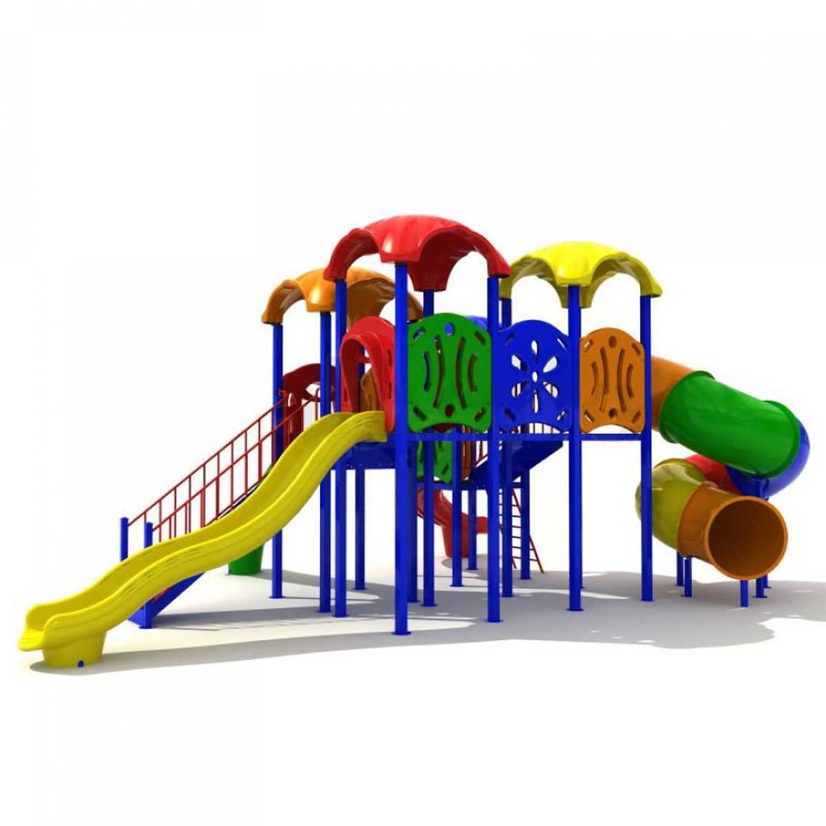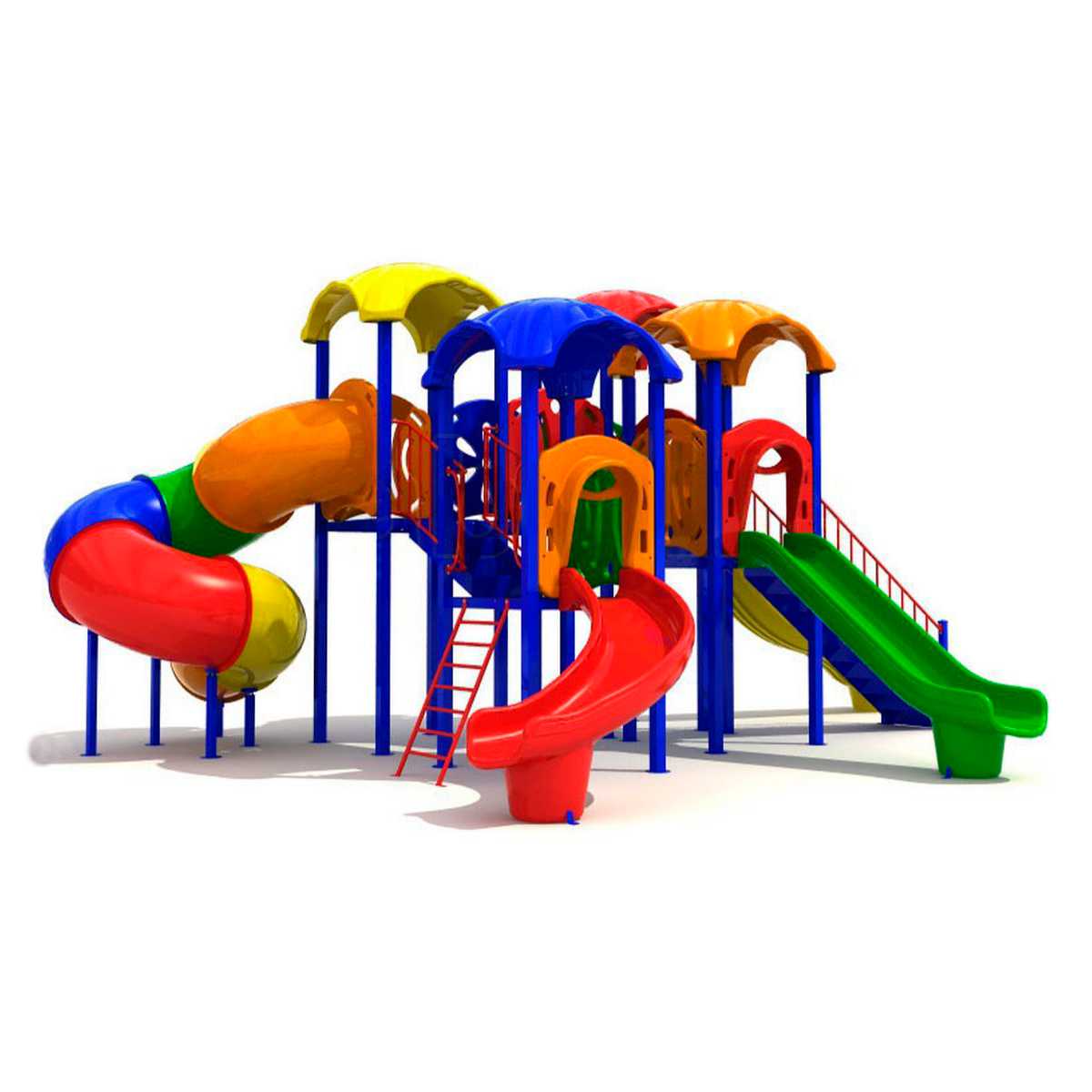 - Горки, крыши выполнены из пищевого полиэтилена низкого давления (ПНД), который не выгорает на солнце и сохраняет яркие цвета до 15 лет.