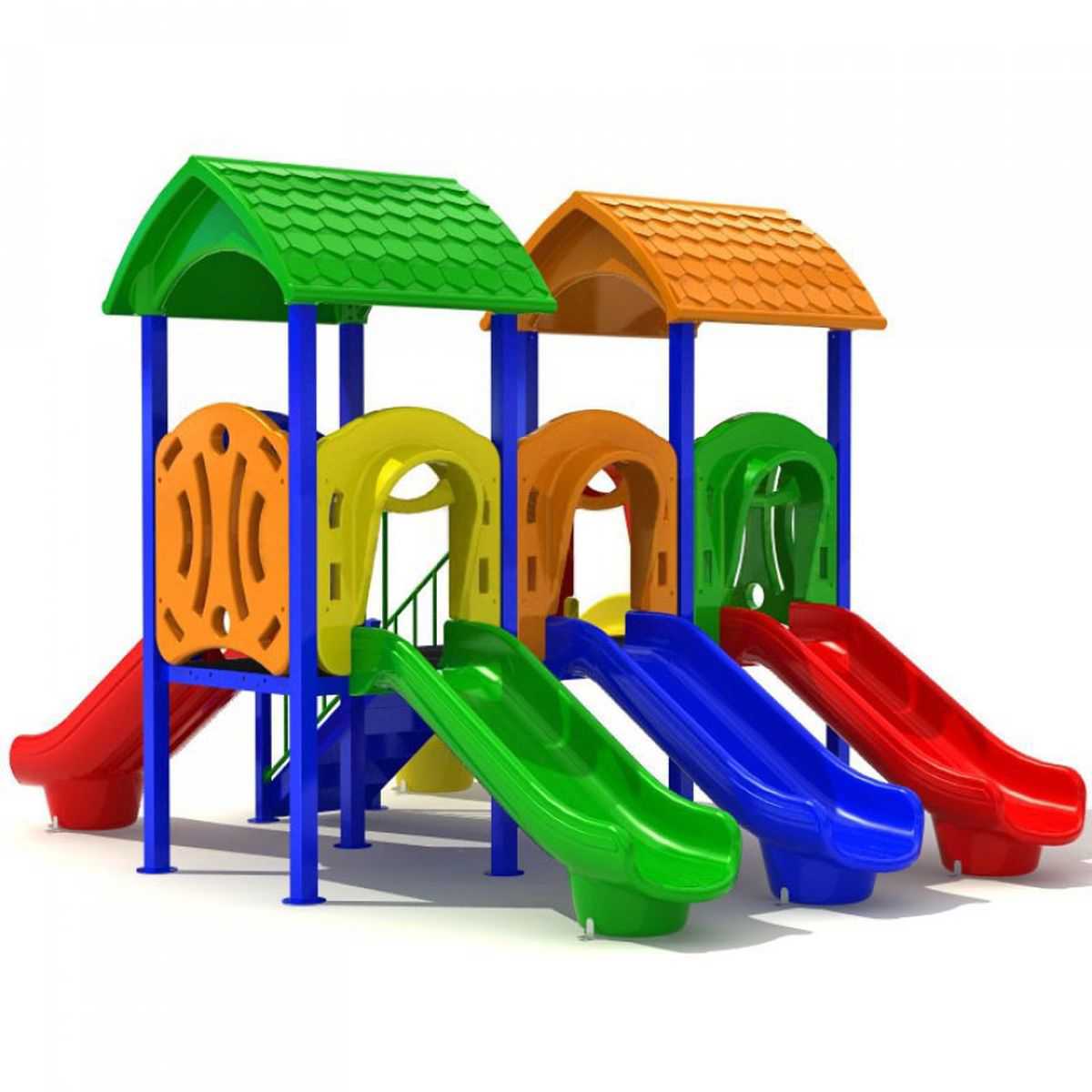 - Горки, крыши выполнены из пищевого полиэтилена низкого давления (ПНД), который не выгорает на солнце и сохраняет яркие цвета до 15 лет.