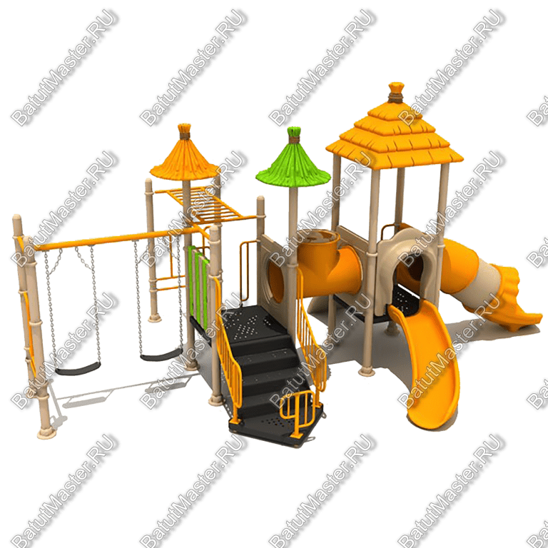 - Горки, крыши выполнены из пищевого полиэтилена низкого давления (ПНД), который не выгорает на солнце и сохраняет яркие цвета до 15 лет.