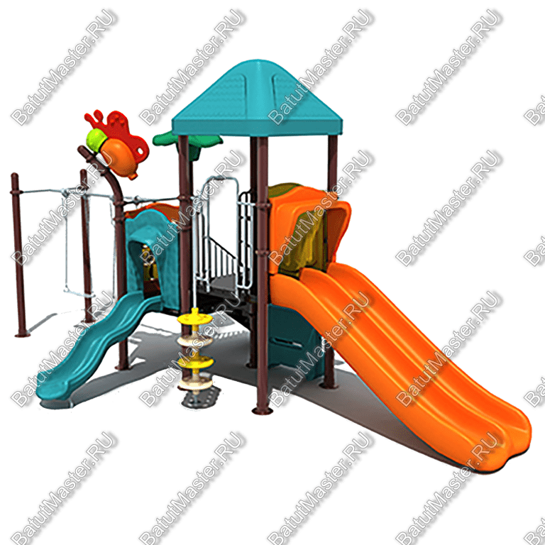 - Горки, крыши выполнены из пищевого полиэтилена низкого давления (ПНД), который не выгорает на солнце и сохраняет яркие цвета до 15 лет.
