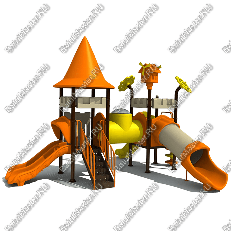 - Горки, крыши выполнены из пищевого полиэтилена низкого давления (ПНД), который не выгорает на солнце и сохраняет яркие цвета до 15 лет.