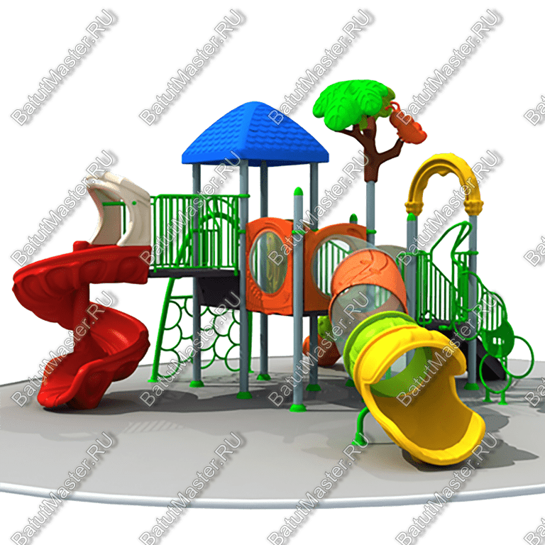 - Горки, крыши выполнены из пищевого полиэтилена низкого давления (ПНД), который не выгорает на солнце и сохраняет яркие цвета до 15 лет.