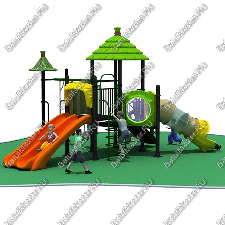 - Горки, крыши выполнены из пищевого полиэтилена низкого давления (ПНД), который не выгорает на солнце и сохраняет яркие цвета до 15 лет.