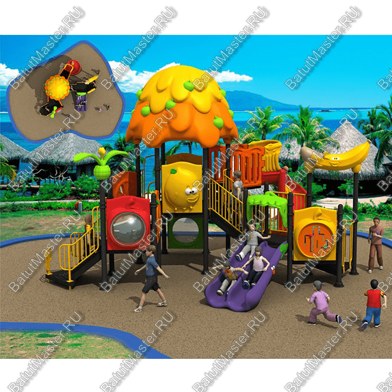 "Поляна Витаминок" — это тропический детский городок, где каждая горка — как банановый спуск, а каждый элемент — сочная порция веселья. Изготовленная из прочных материалов которая выдерживает любые погодные капризы и дарит детям настоящее "фруктовое" счастье каждый день!
