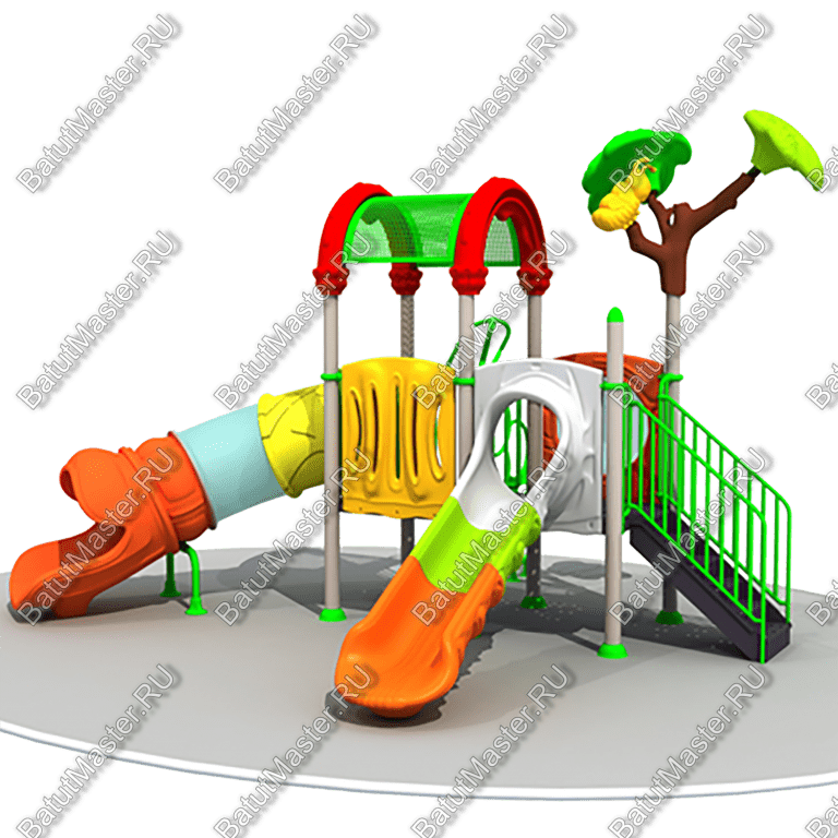 - Горки, крыши выполнены из пищевого полиэтилена низкого давления (ПНД), который не выгорает на солнце и сохраняет яркие цвета до 15 лет.