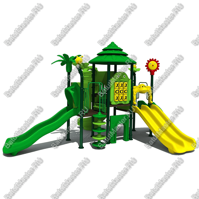Игровая зона «Тропический мир» соответствует требованиям безопасности и подходит для установки на различных территориях: