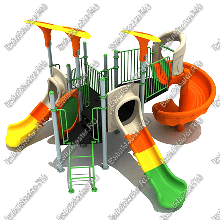 - Горки, крыши выполнены из пищевого полиэтилена низкого давления (ПНД), который не выгорает на солнце и сохраняет яркие цвета до 15 лет.