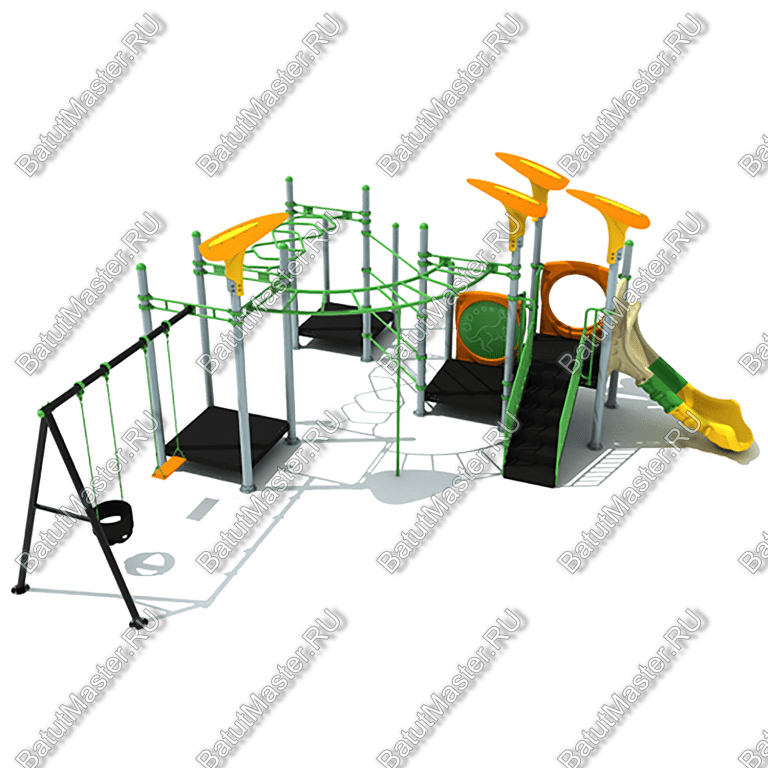 Площадка включает несколько ярких и увлекательных элементов, которые гарантированно заинтересуют детей и помогут развивать их физические способности. В составе игрового комплекса: