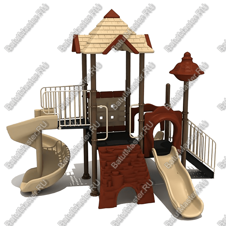 - Горки, крыши выполнены из пищевого полиэтилена низкого давления (ПНД), который не выгорает на солнце и сохраняет яркие цвета до 15 лет.