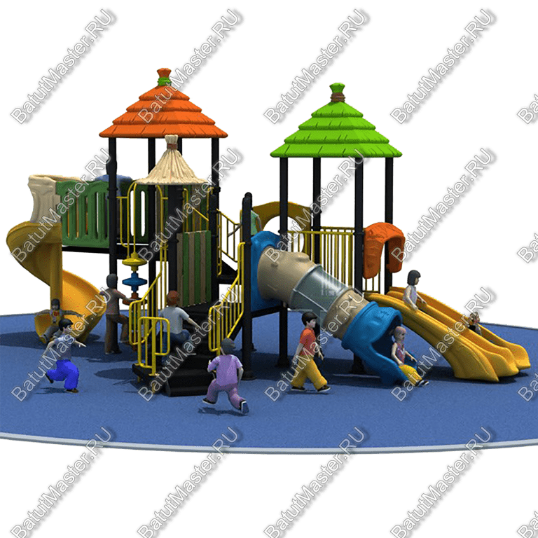 - Горки, крыши выполнены из пищевого полиэтилена низкого давления (ПНД), который не выгорает на солнце и сохраняет яркие цвета до 15 лет.