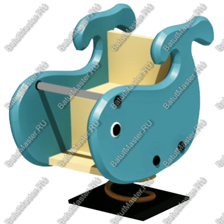 Представленная конструкция отличается цветовой мягкостью и узнаваемостью, ведь даже малыш с легкостью распознает в качалке кита, так как боковые стенки игрового элемента сделаны в форме этой рыбы и покрашены в синий цвет. Сиденье бежевого цвета отлично вписывается в дизайн качалки. В самом низу этой детали оборудована подножка для более комфортного раскачивания внутри конструкции. На уровне колен боковые стены в виде китов соединены планкой-поручнем, за который дети могут удобно держаться при движении.