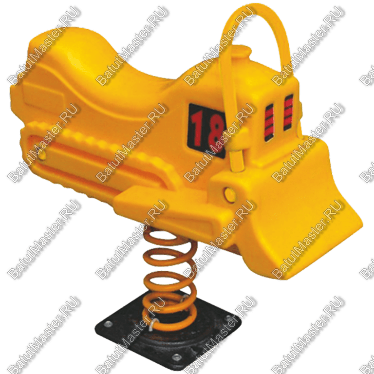 Правильно подобранный цвет, который соответствует настоящей строительной и ремонтной технике, сразу же располагает к себе малышей. Все закругления на форме бульдозера предполагают полную безопасность для использования. Удобные подставки для ног в виде деталей ковша и удобный поручень в виде дуги безопасности над крышей позволяют выполнять самые полные раскачивания без опасности для детей.