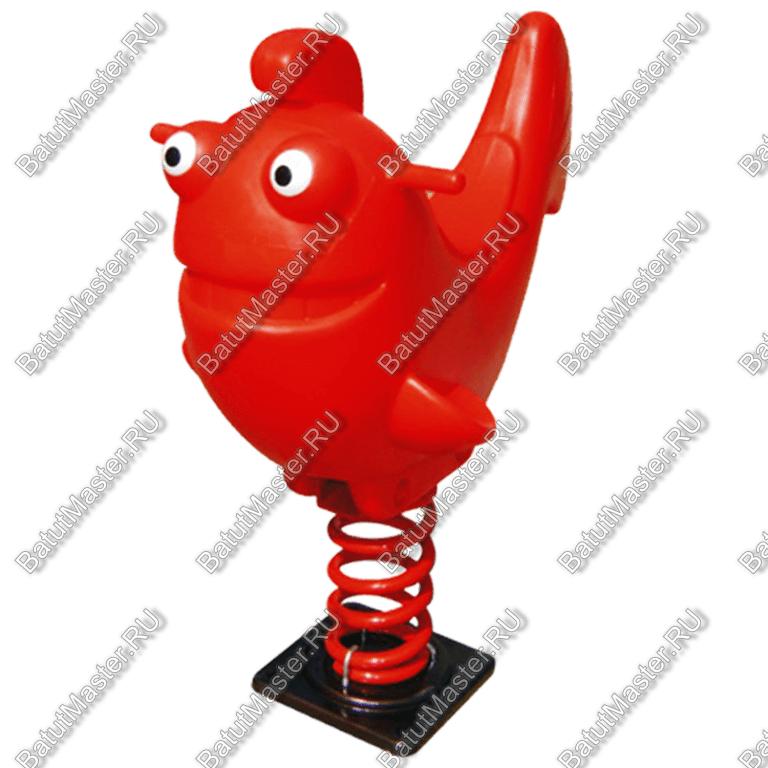 Качалка на пружине в виде ярко красного существа вылита из специального полиэтилена с уже добавленным в него красителем. Сложно определить, какой именно персонаж перед нами, поэтому оставим этот вопрос для детского воображения. Но можно сказать однозначно, что это существо, судя по его выражению лица, дружелюбный и безвредный, а еще на нем можно покачаться.
