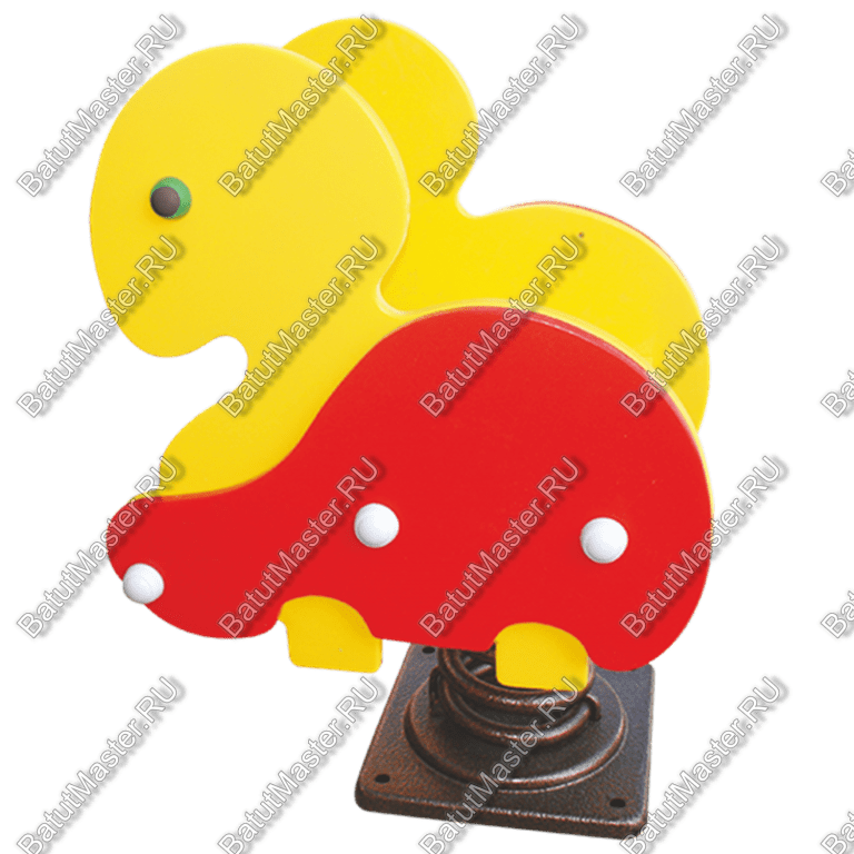 Увлекательная качалка на пружине, состоящая из двух ярких частей (желтая и красная) имеет загадочный образ, который обязательно заинтересует малыша. Сам образ персонажа представлен в виде добродушного детеныша настоящего динозавра, который имеет красное основное туловище и желтые лапы, выглядывающие из-под самого низа конструкции.