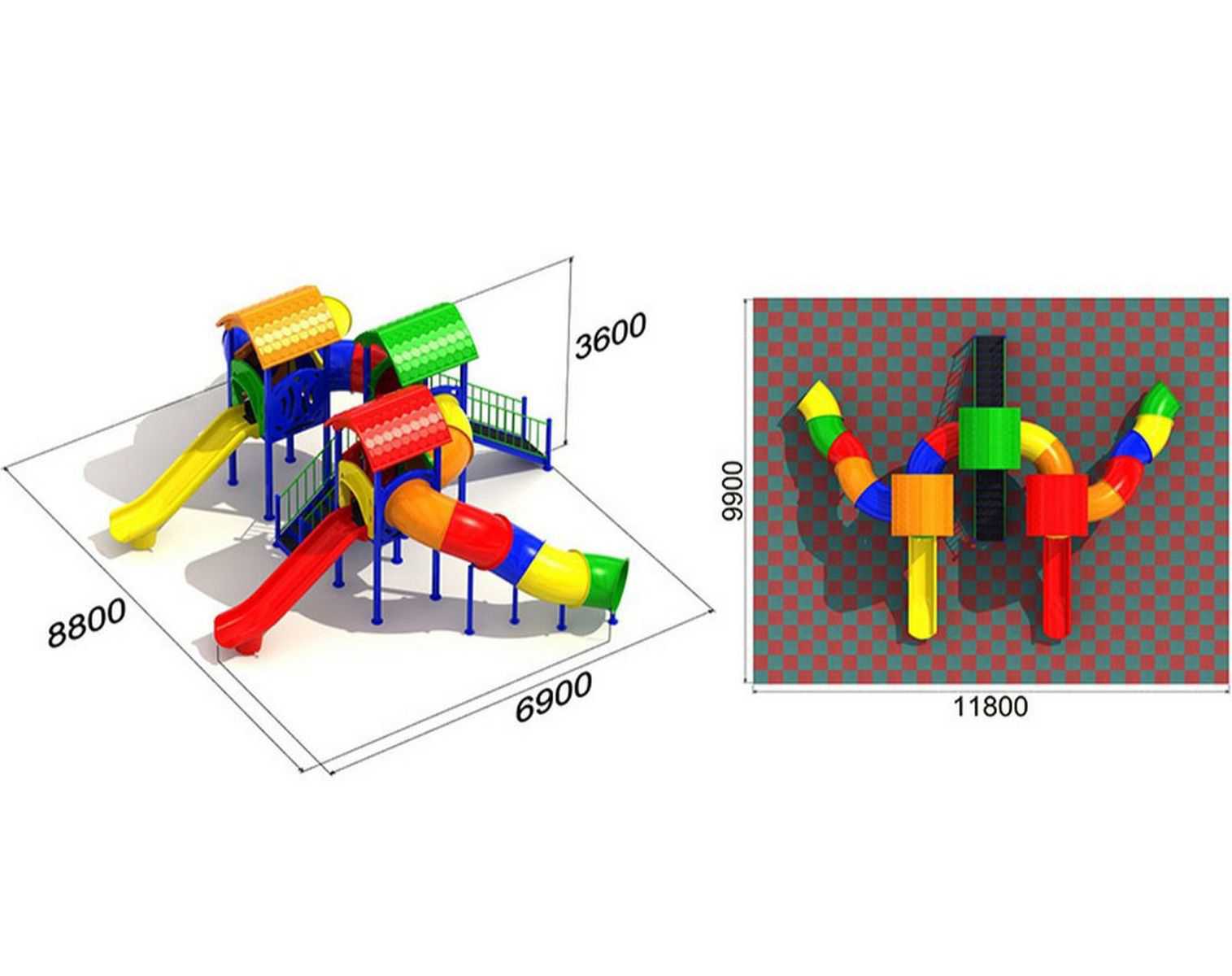 - Горки, крыши выполнены из пищевого полиэтилена низкого давления (ПНД), который не выгорает на солнце и сохраняет яркие цвета до 15 лет.