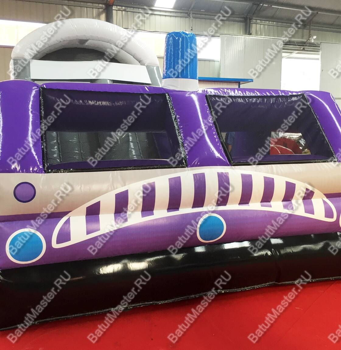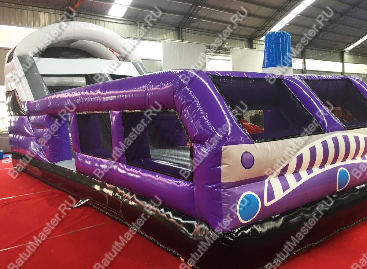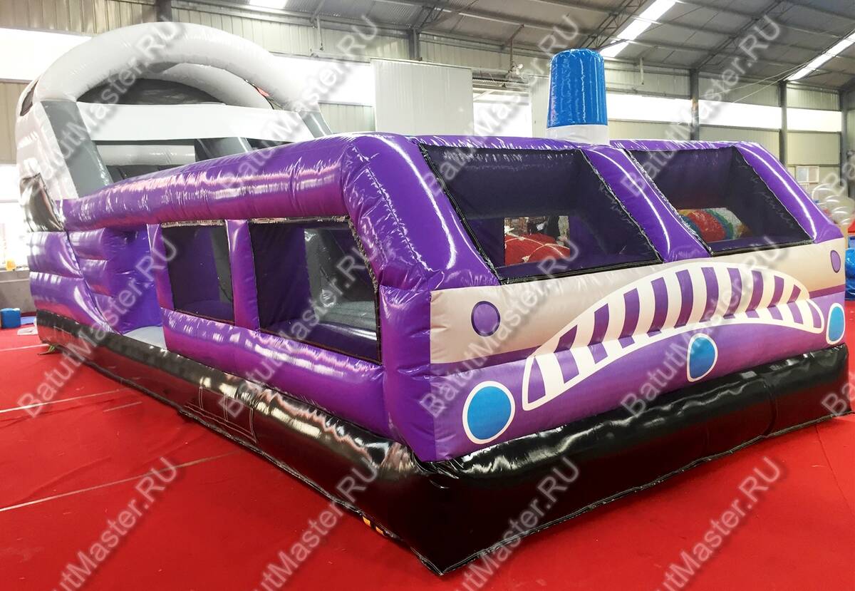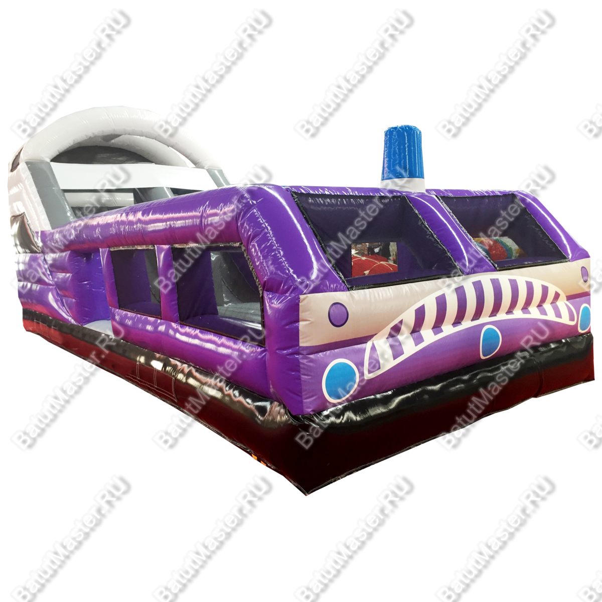 На этом батуте не предполагается просто сидеть, на нём можно играть и даже кататься с горки. Да-да, у этого аттракциона даже предусмотрена горка, которая расположена сзади. Таким образом, батут становится намного интереснее и разнообразнее по развлечениям.