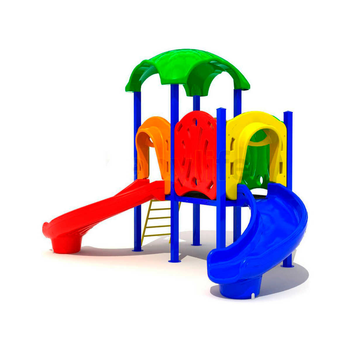 - Горки, крыши выполнены из пищевого полиэтилена низкого давления (ПНД), который не выгорает на солнце и сохраняет яркие цвета до 15 лет.