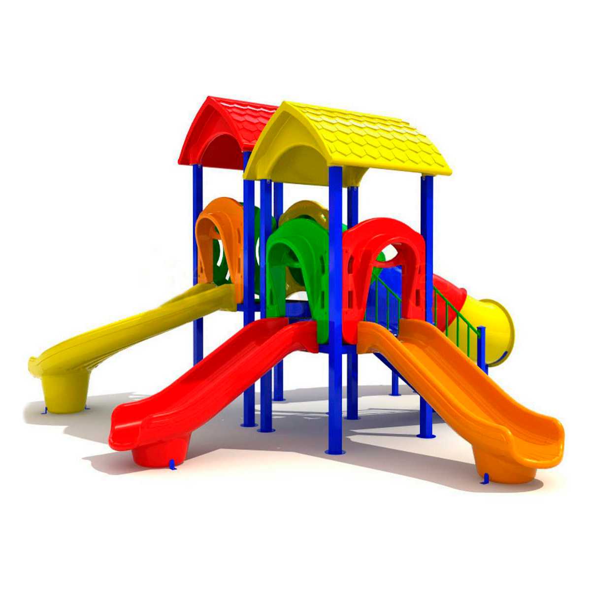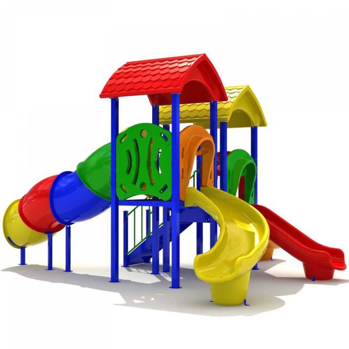 - Горки, крыши выполнены из пищевого полиэтилена низкого давления (ПНД), который не выгорает на солнце и сохраняет яркие цвета до 15 лет.