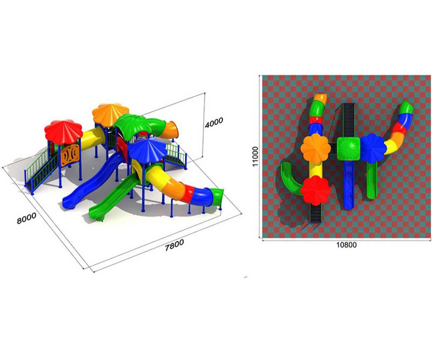- Горки, крыши выполнены из пищевого полиэтилена низкого давления (ПНД), который не выгорает на солнце и сохраняет яркие цвета до 15 лет.