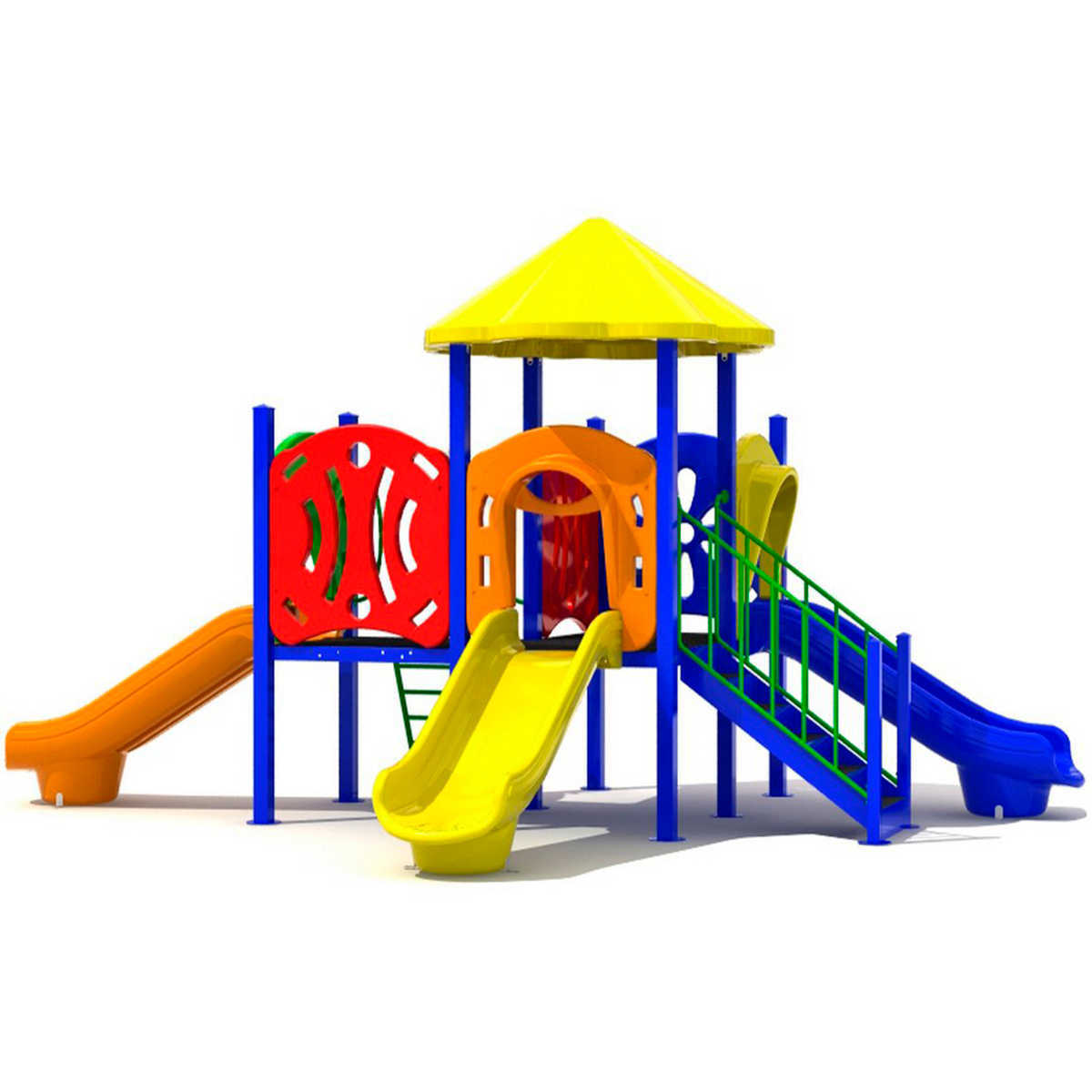 - Горки, крыши выполнены из пищевого полиэтилена низкого давления (ПНД), который не выгорает на солнце и сохраняет яркие цвета до 15 лет.