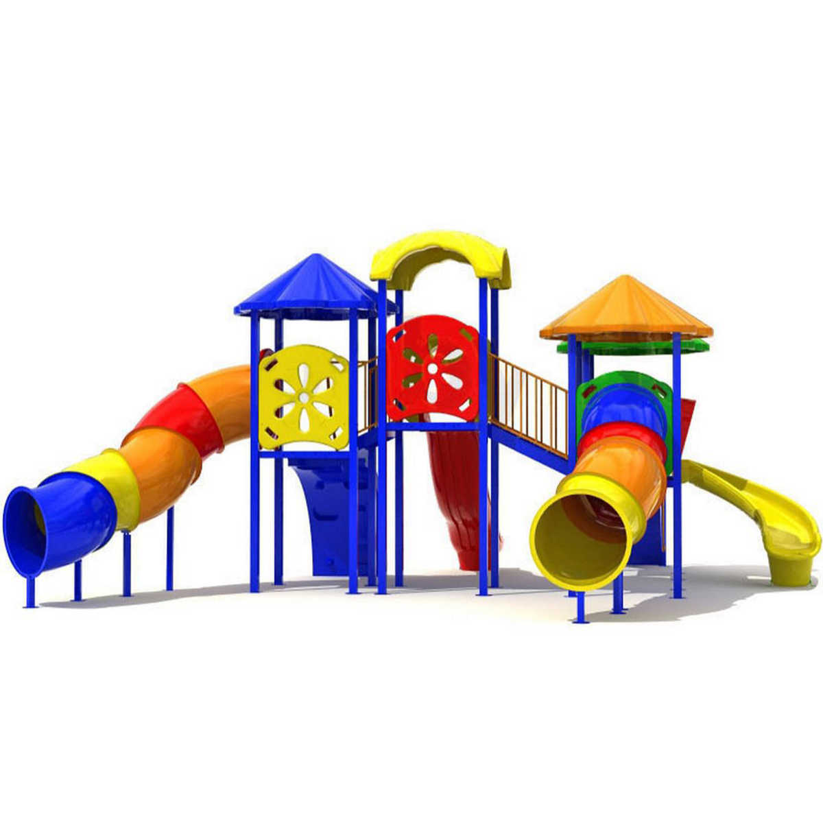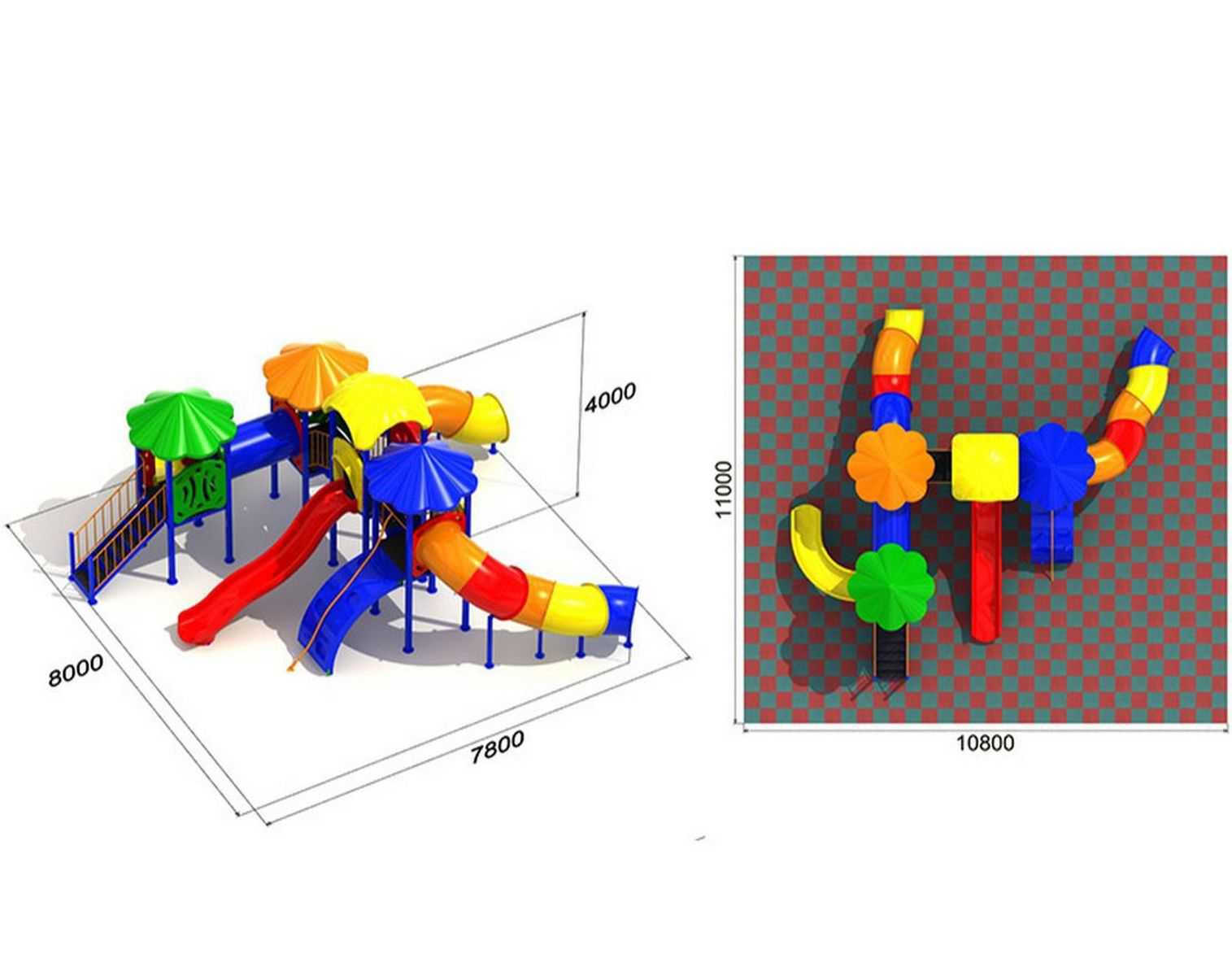 - Горки, крыши выполнены из пищевого полиэтилена низкого давления (ПНД), который не выгорает на солнце и сохраняет яркие цвета до 15 лет.