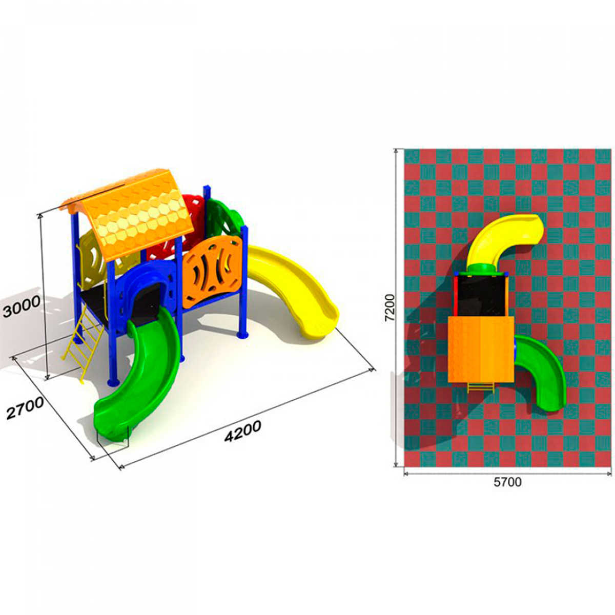 - Горки, крыши выполнены из пищевого полиэтилена низкого давления (ПНД), который не выгорает на солнце и сохраняет яркие цвета до 15 лет.