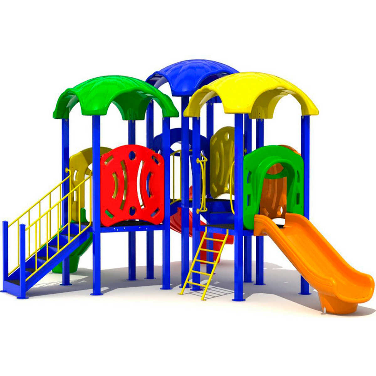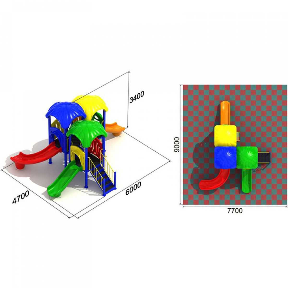 - Горки, крыши выполнены из пищевого полиэтилена низкого давления (ПНД), который не выгорает на солнце и сохраняет яркие цвета до 15 лет.