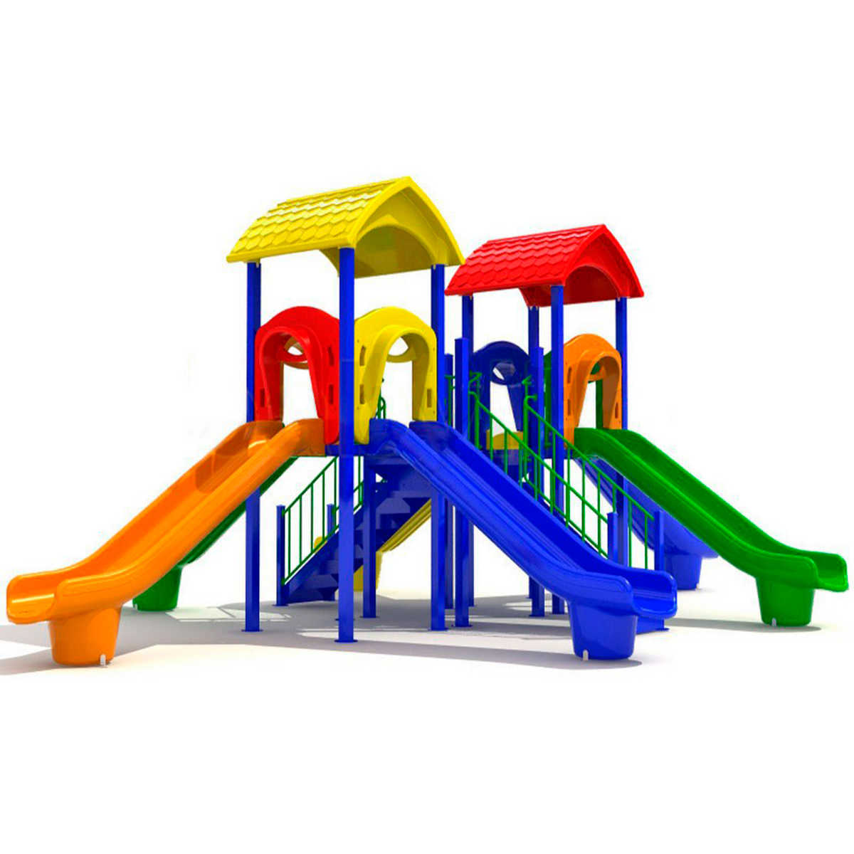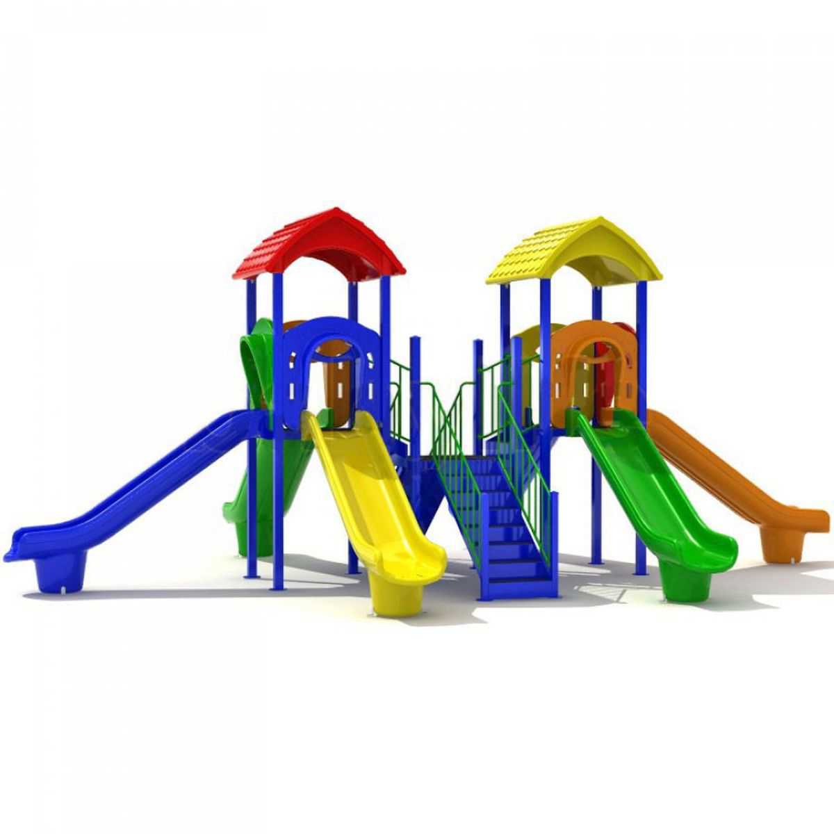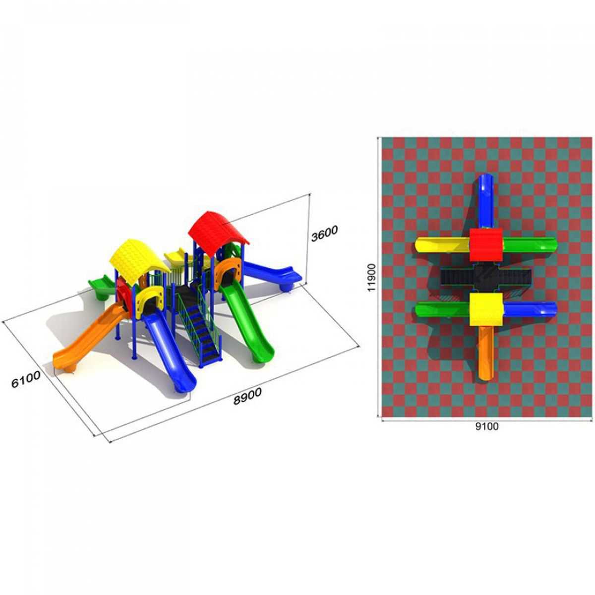 - Горки, крыши выполнены из пищевого полиэтилена низкого давления (ПНД), который не выгорает на солнце и сохраняет яркие цвета до 15 лет.