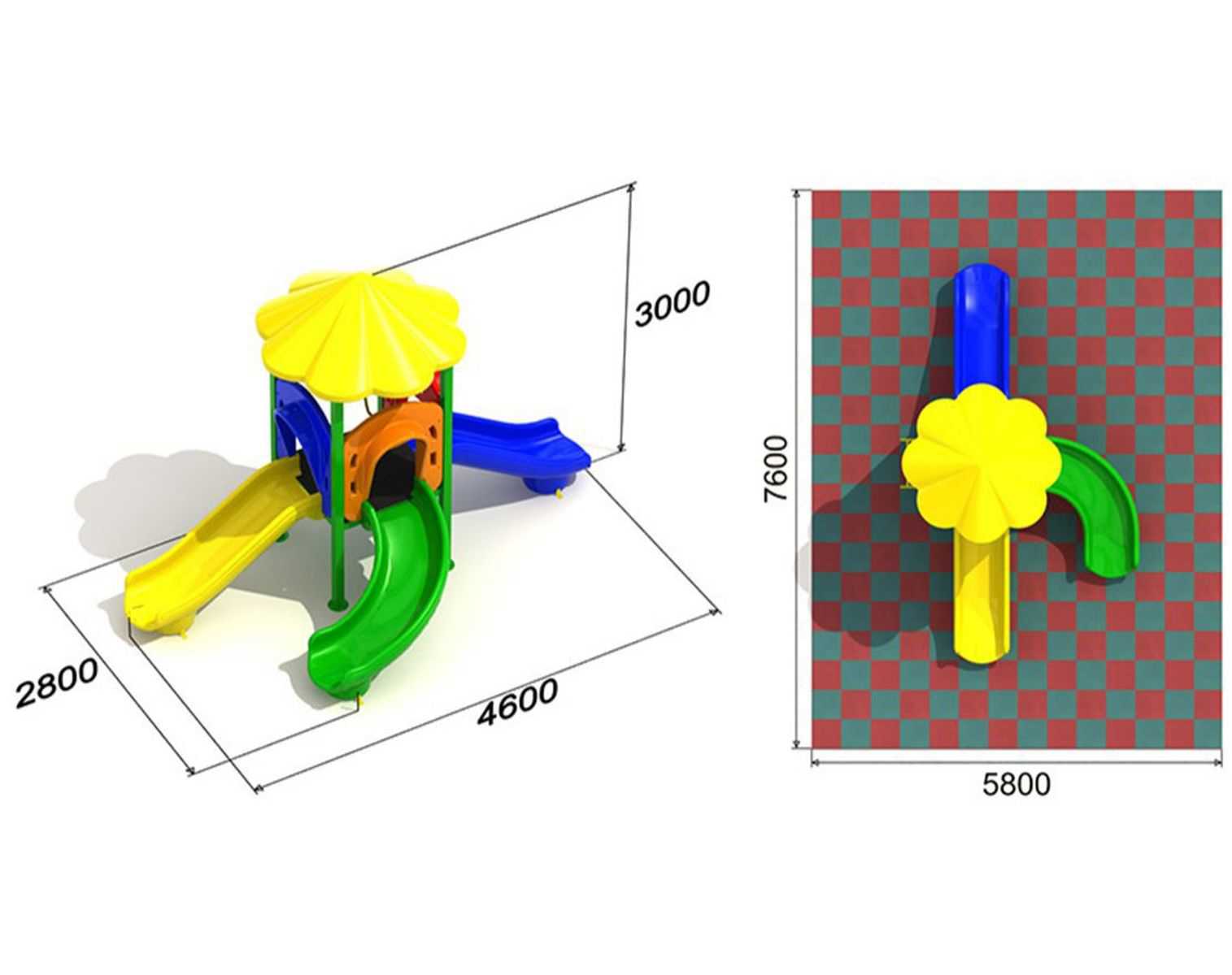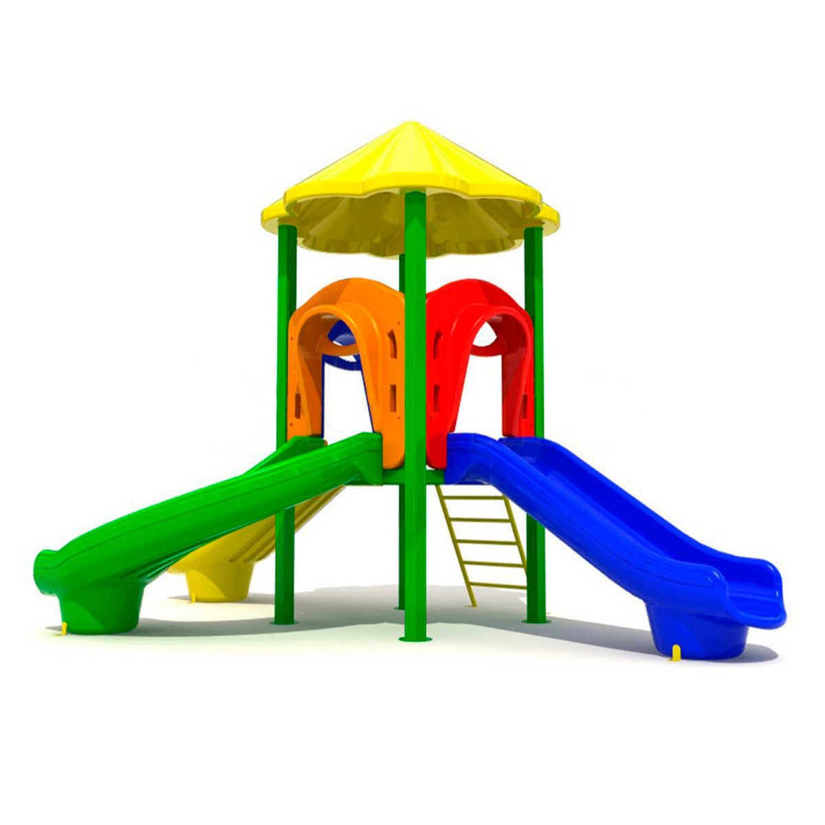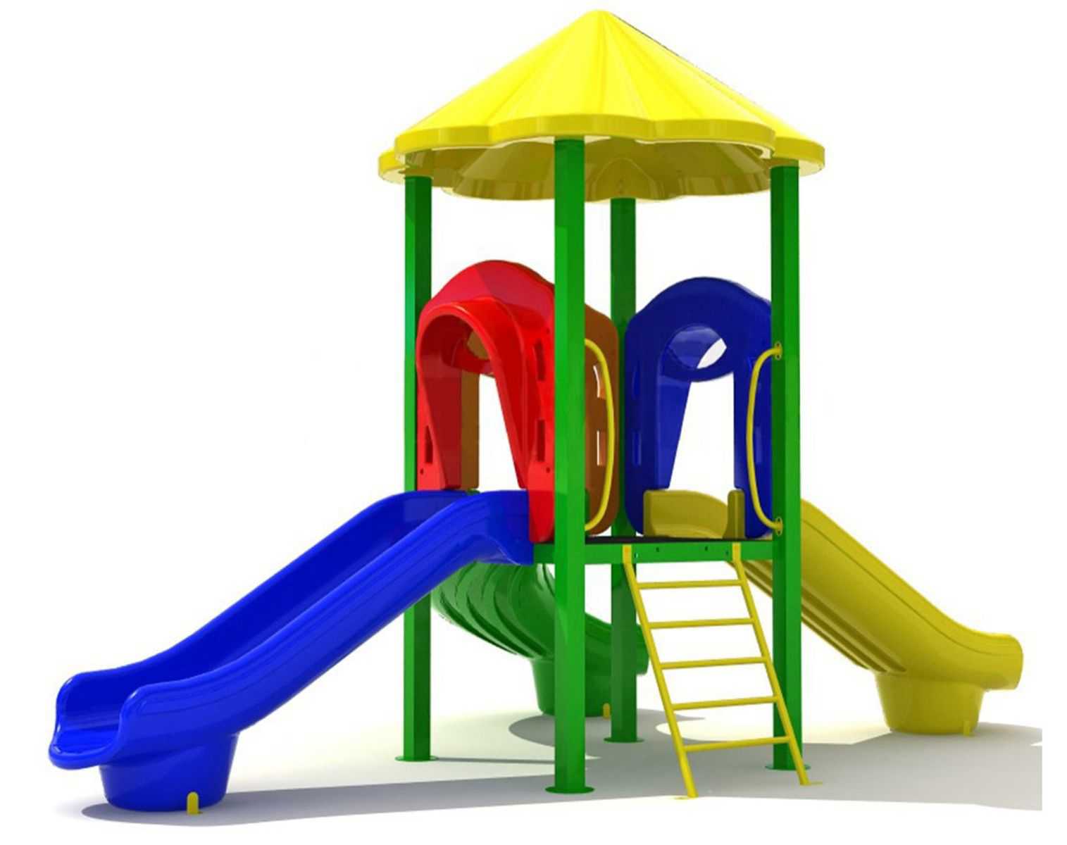- Горки, крыши выполнены из пищевого полиэтилена низкого давления (ПНД), который не выгорает на солнце и сохраняет яркие цвета до 15 лет.