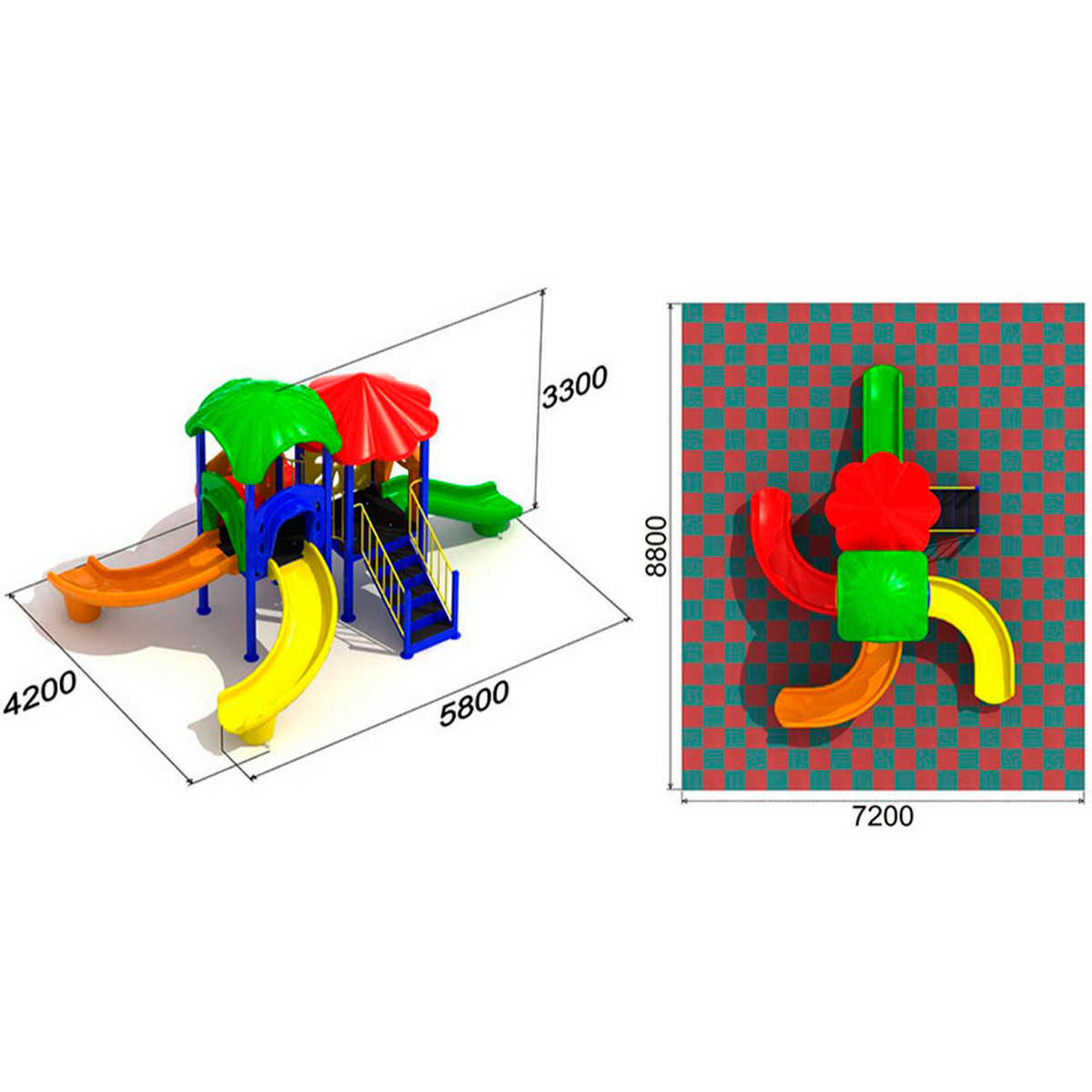 - Горки, крыши выполнены из пищевого полиэтилена низкого давления (ПНД), который не выгорает на солнце и сохраняет яркие цвета до 15 лет.