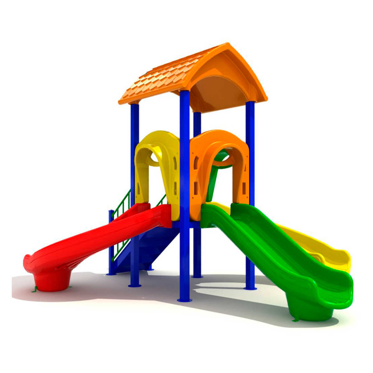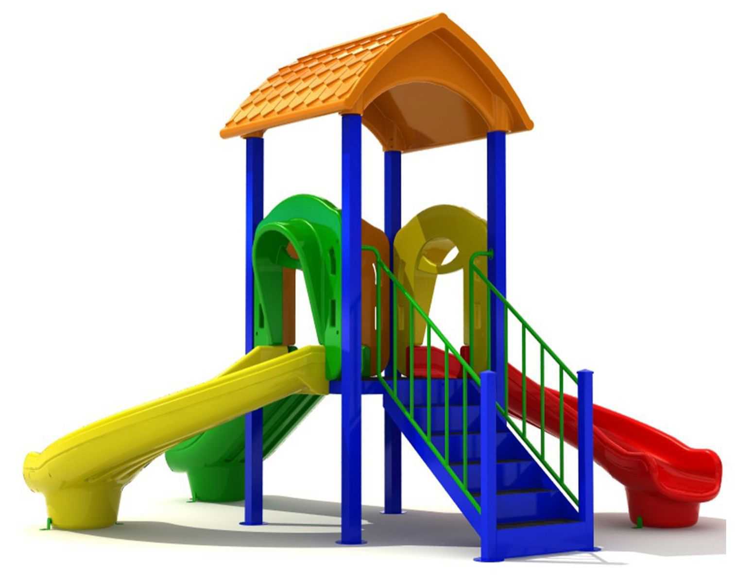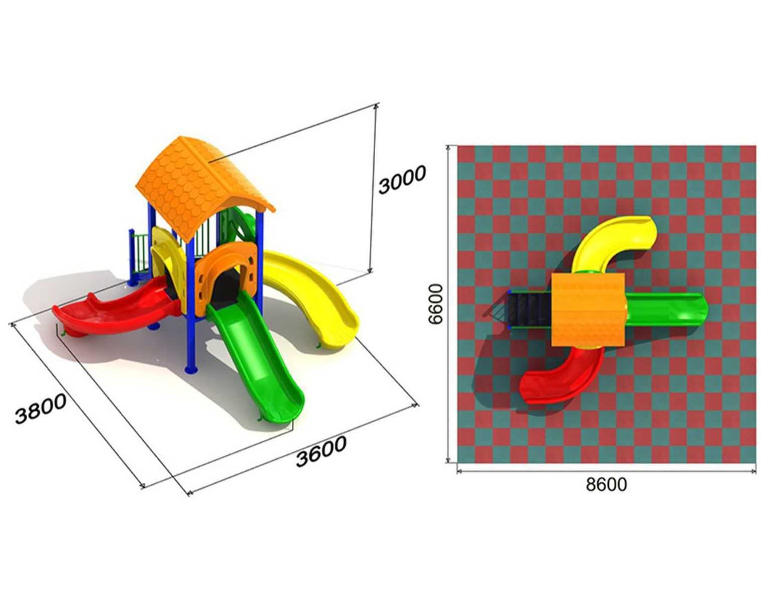 - Горки, крыши выполнены из пищевого полиэтилена низкого давления (ПНД), который не выгорает на солнце и сохраняет яркие цвета до 15 лет.