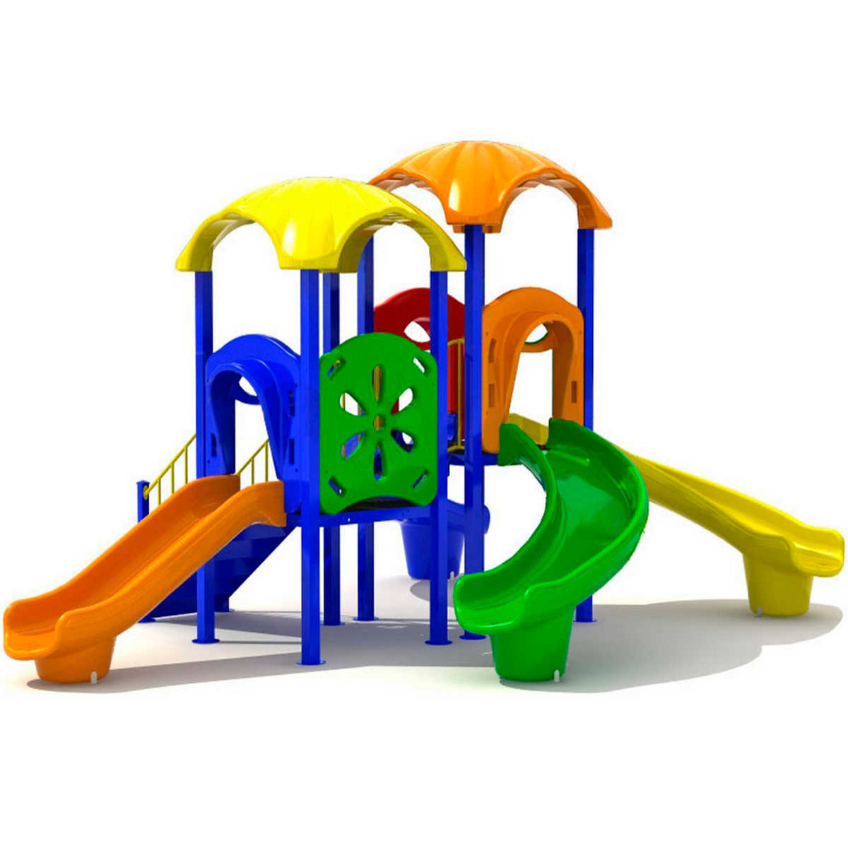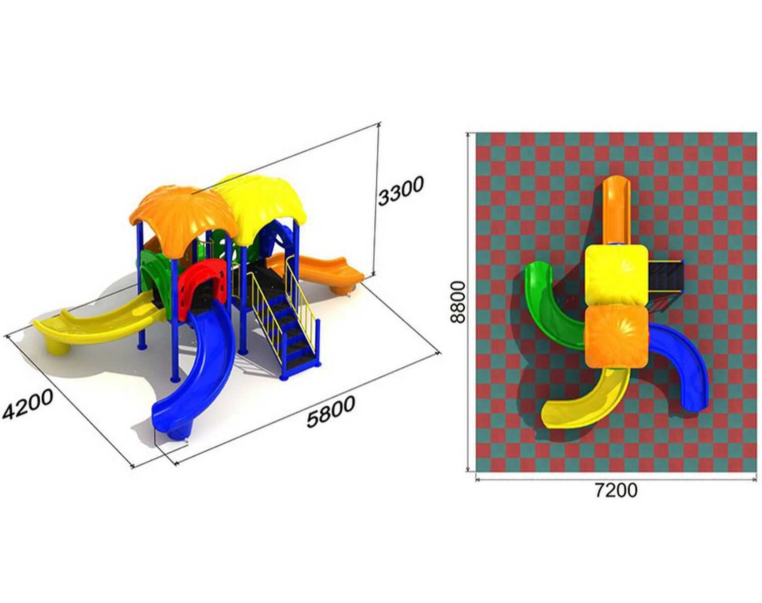 - Горки, крыши выполнены из пищевого полиэтилена низкого давления (ПНД), который не выгорает на солнце и сохраняет яркие цвета до 15 лет.
