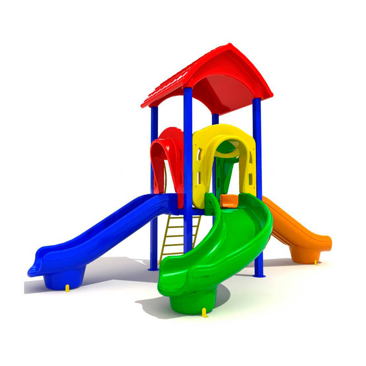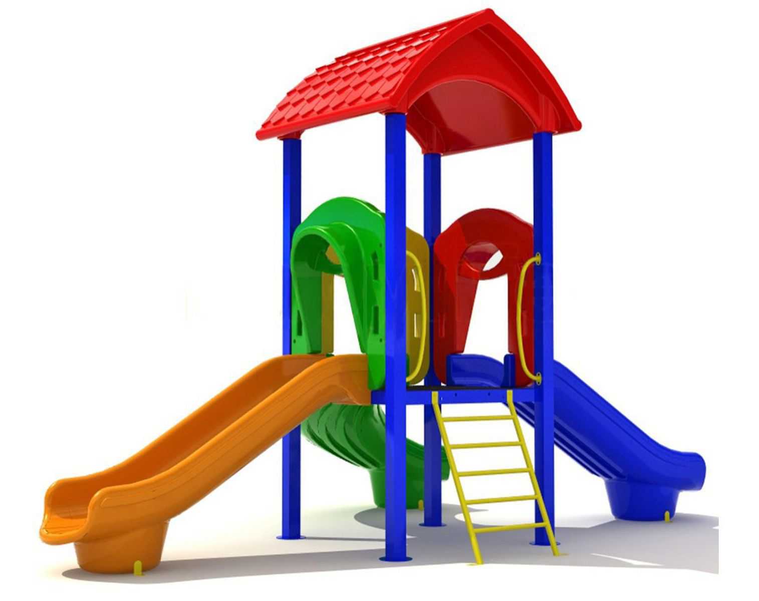 - Горки, крыши выполнены из пищевого полиэтилена низкого давления (ПНД), который не выгорает на солнце и сохраняет яркие цвета до 15 лет.
