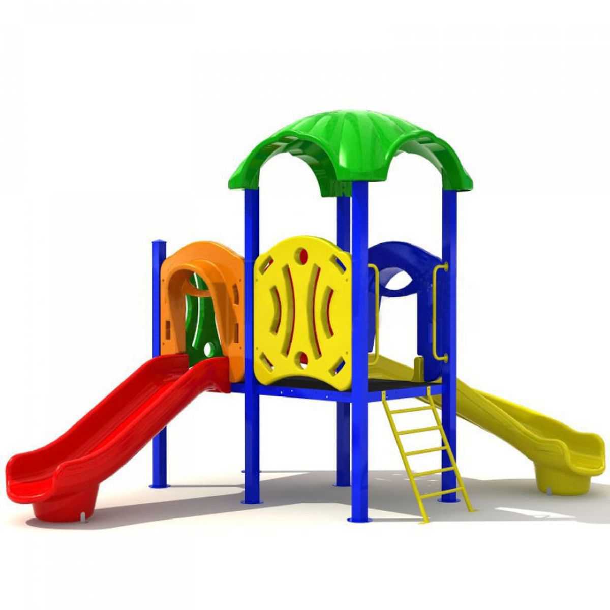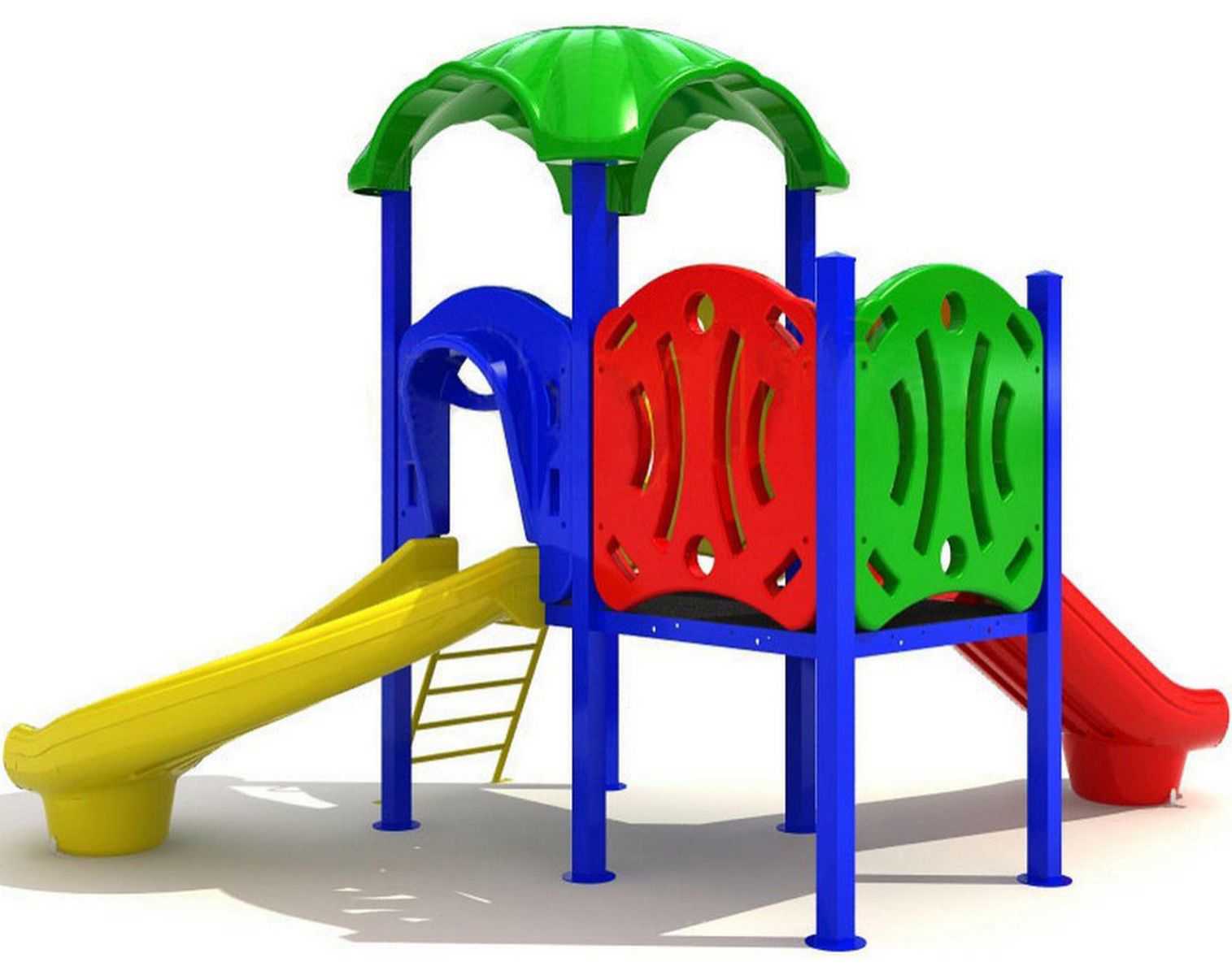 - Горки, крыши выполнены из пищевого полиэтилена низкого давления (ПНД), который не выгорает на солнце и сохраняет яркие цвета до 15 лет.