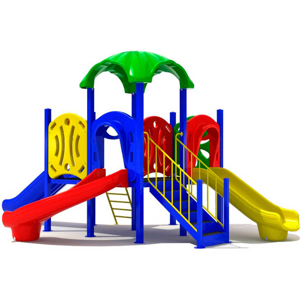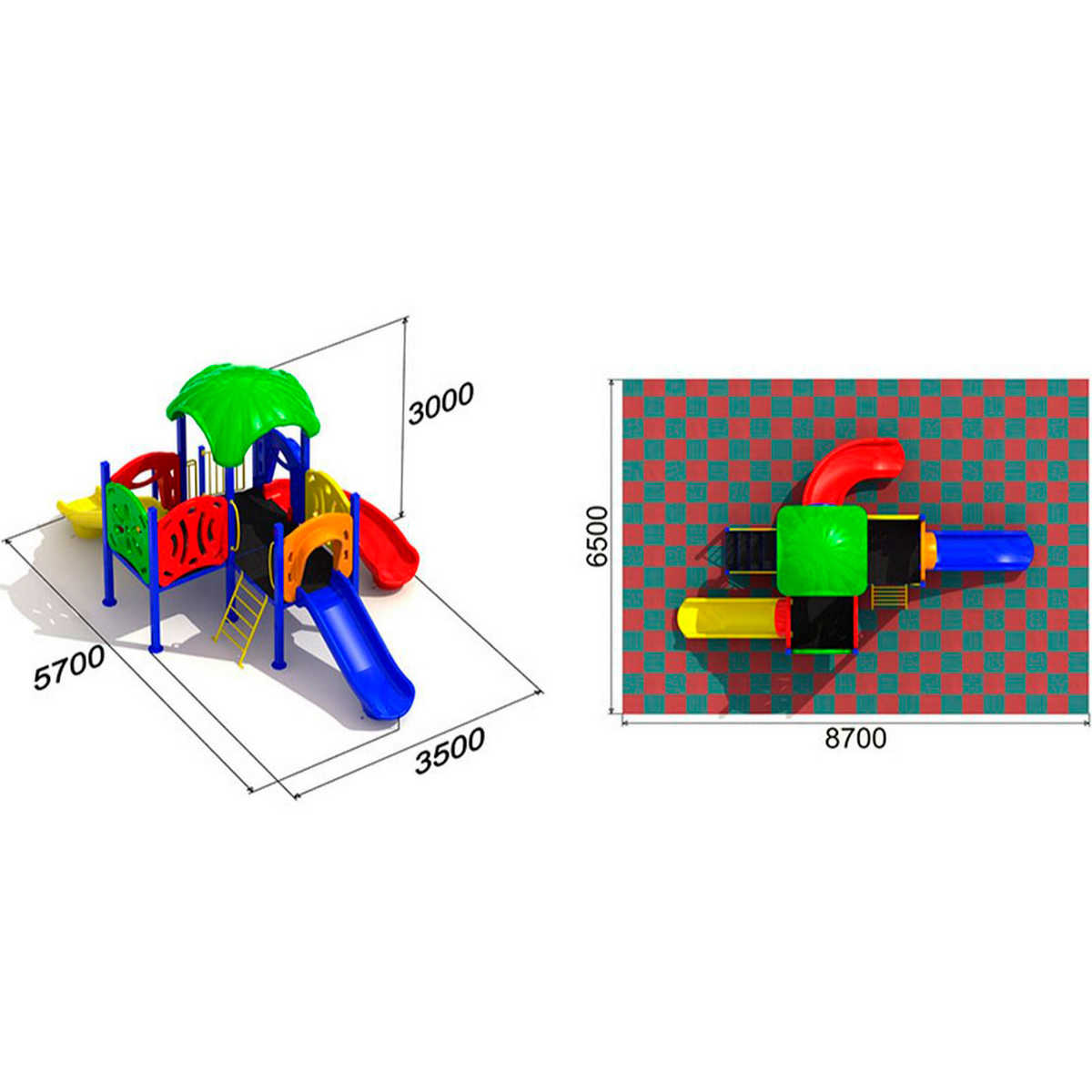- Горки, крыши выполнены из пищевого полиэтилена низкого давления (ПНД), который не выгорает на солнце и сохраняет яркие цвета до 15 лет.
