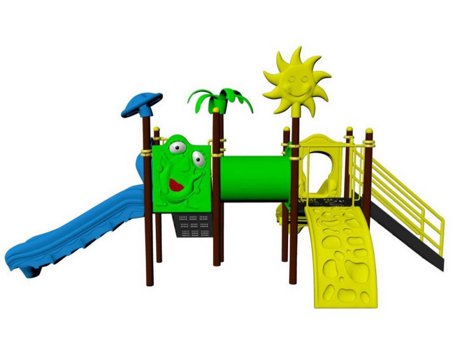 - Горки, крыши выполнены из пищевого полиэтилена низкого давления (ПНД), который не выгорает на солнце и сохраняет яркие цвета до 15 лет.