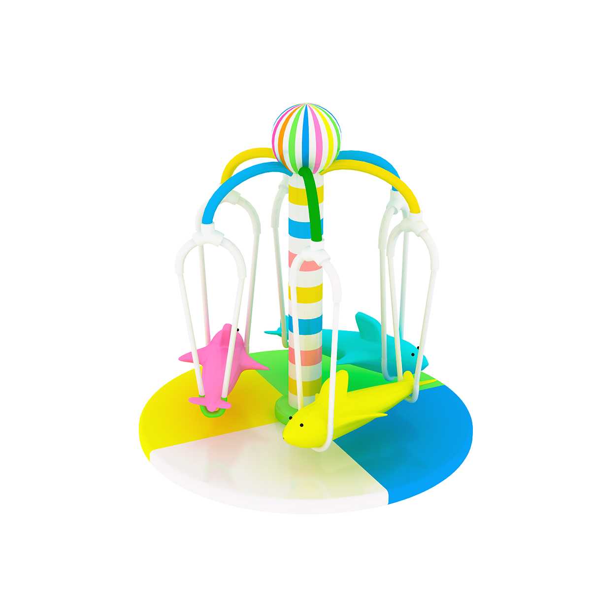 Детская карусель 4kids «Радужные дельфины» с электроприводом — это яркий элемент развлекательных комплексов, который станет настоящим центром притяжения для детей. Вращение на карусели дарит незабываемые ощущения детям в возрасте от 3 до 14 лет. Карусель выполнена в ярких морских тонах — синим, жёлтым, голубым и розовым, что привлекает внимание детей и взрослых. Элементы карусели — красочные фигурки дельфинов, которые придают игре не только визуальную привлекательность, но и развивают воображение.