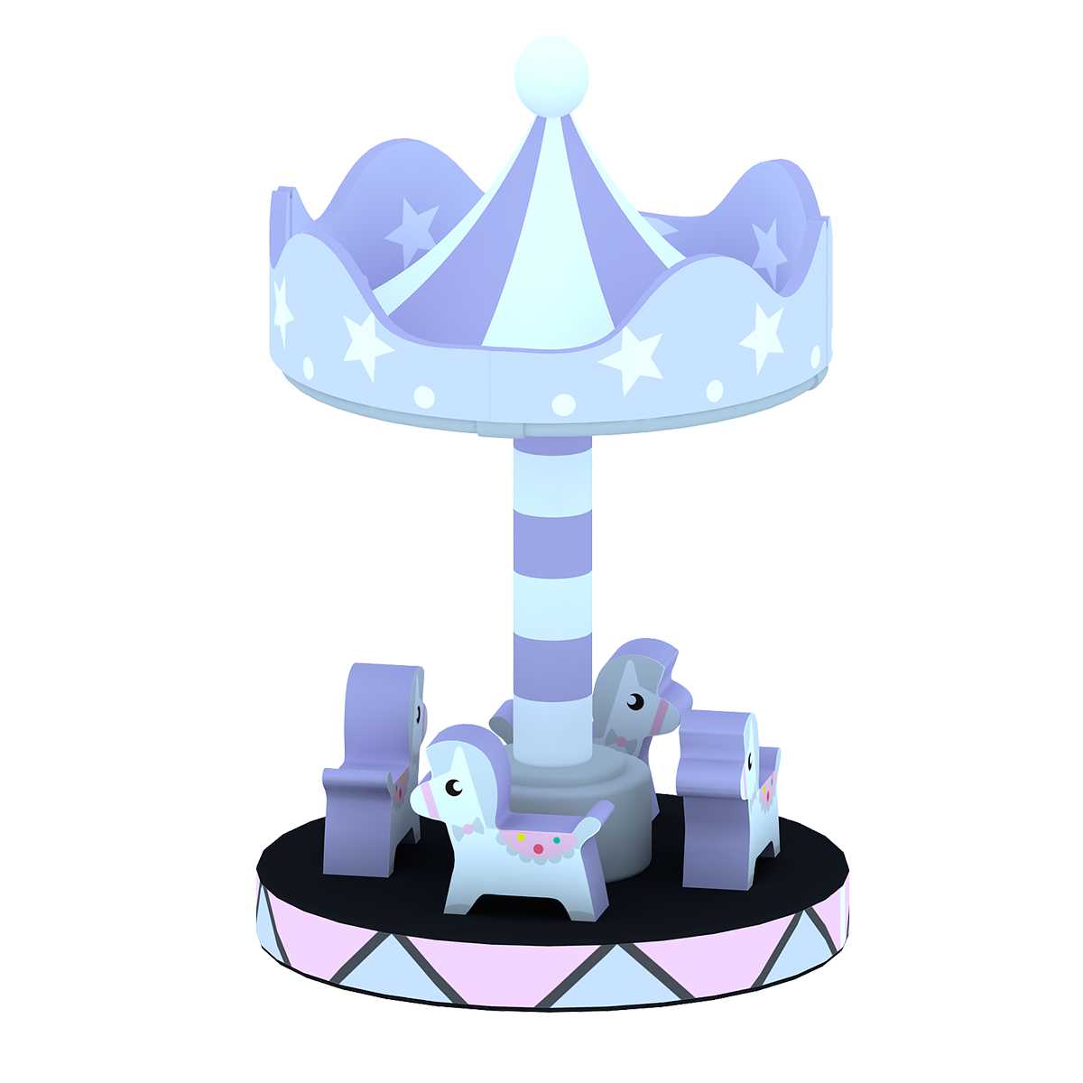 Карусель «Звёздочка» отлично подойдет для торговых центров, развлекательных комплексов, игровых комнат и игровых лабиринтов. Оборудование выполнено в ярких, но спокойных цветах – голубом, фиолетовом и белом, что позволяет ему гармонично вписаться в любые интерьерные решения. Благодаря своему дизайну, эта карусель подходит как для девочек, так и для мальчиков, что делает её универсальным выбором для разных категорий посетителей.