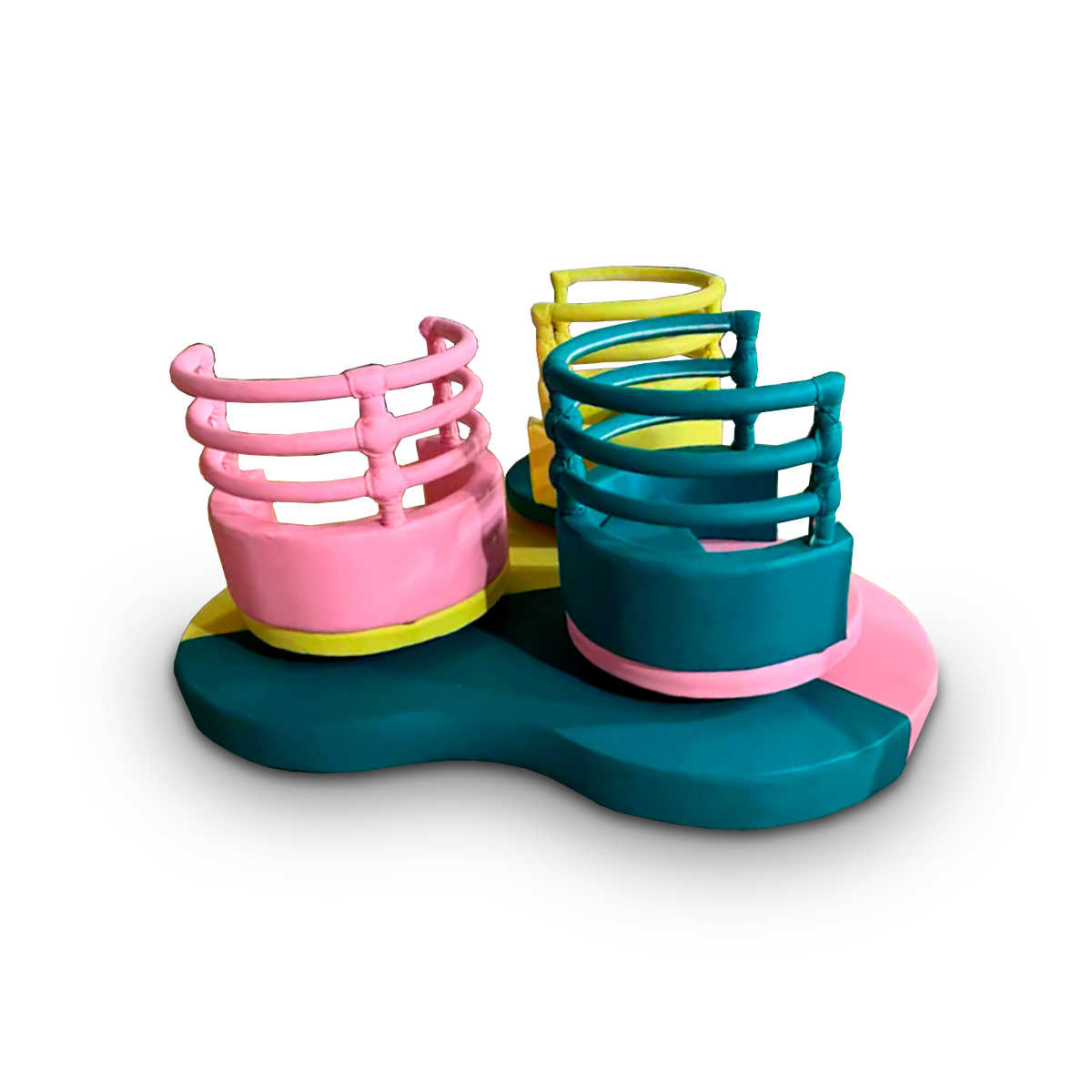 Этот аттракцион идеально впишется в любое пространство — будь то парк, игровая зона в торговом центре или развлекательный комплекс. Платформы карусели прочные и устойчивые, а яркая цветовая палитра добавляет праздничного настроения и делает карусель заметной издалека.