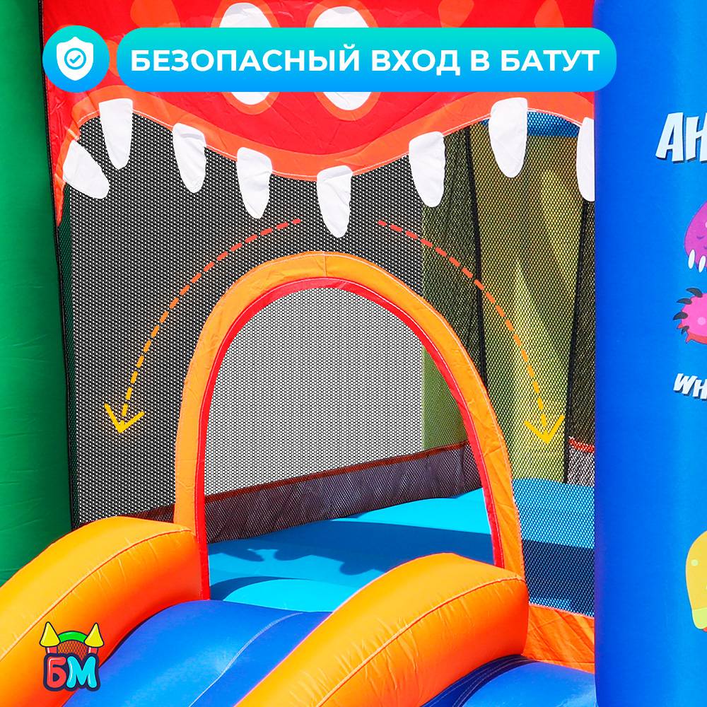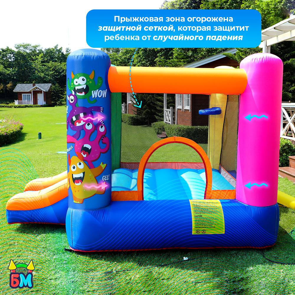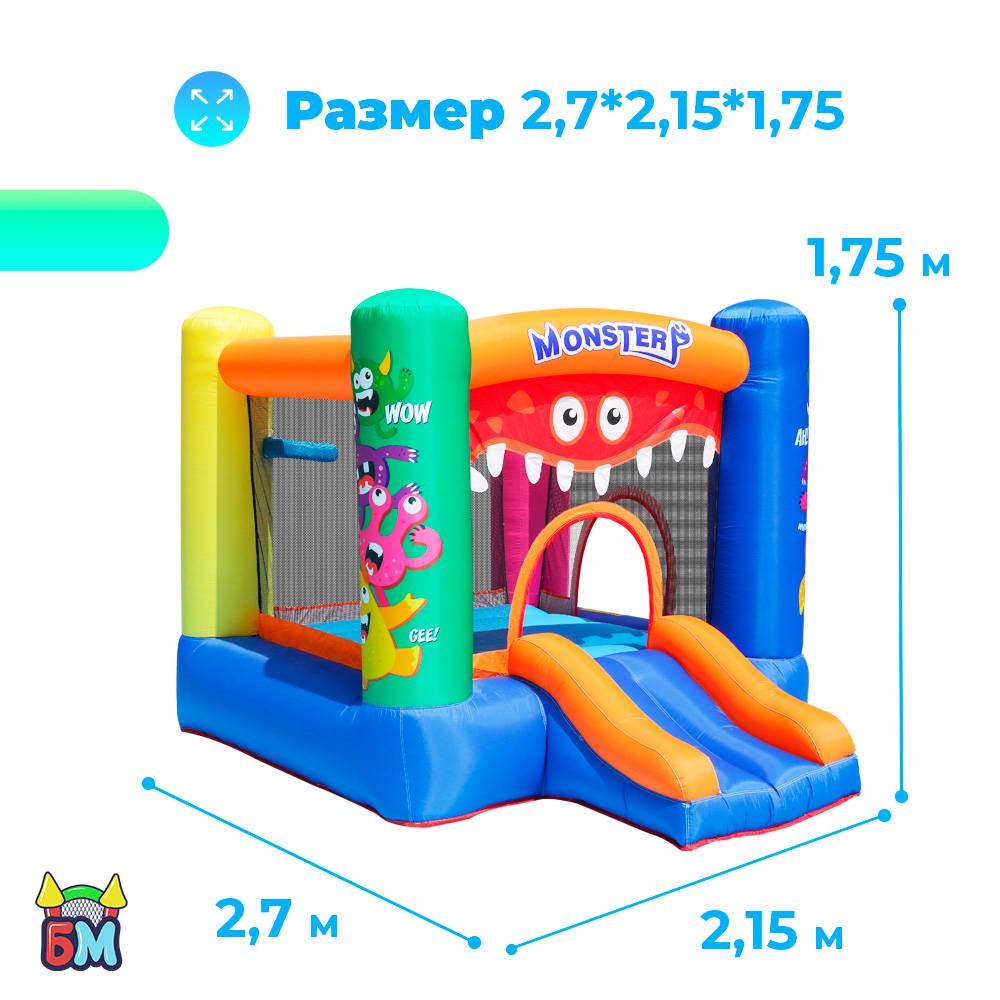 Надувной батут для дома и дачи с горкой "Монстрики" 270x215x175 см.