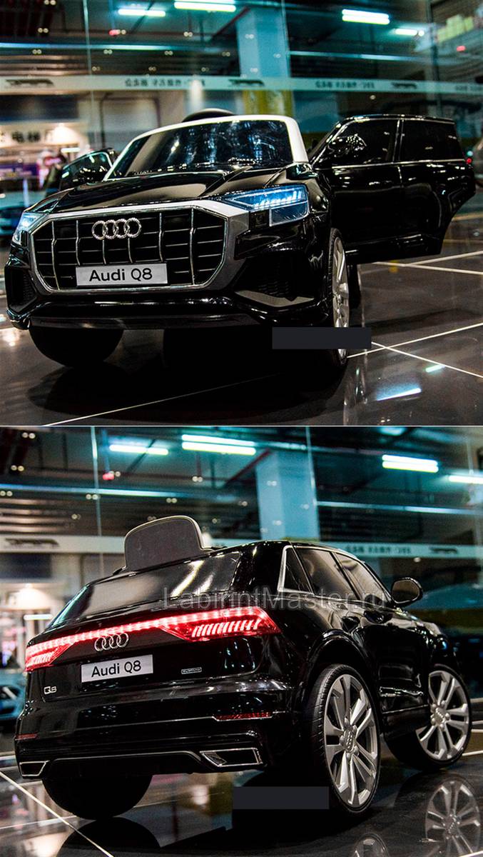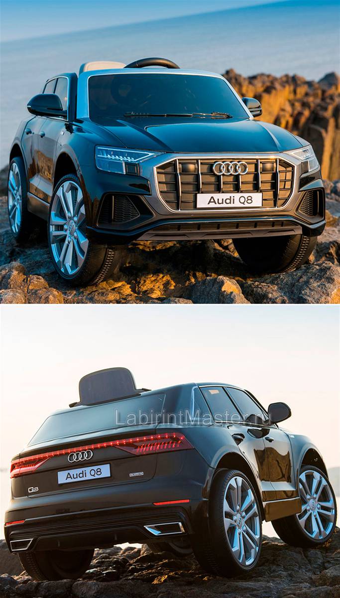 Детский электромобиль «AUDI Q8» черного цвета непременно понравится каждому малышу. Современный дизайн и отличное оснащение позволит только наслаждаться катанием. Машинка очень схожа с настоящей моделью для взрослого человека, отчего становится сразу узнаваемой. Здесь можно выделить особенные характеристики для безопасного и интересного вождения. Так удобное кресло водителя оснащено ремнем безопасности, а в дверях имеются дополнительные замки изнутри. Это позволит не только надежно закрепиться в кресле водителя, но и не выпасть во время вождения.