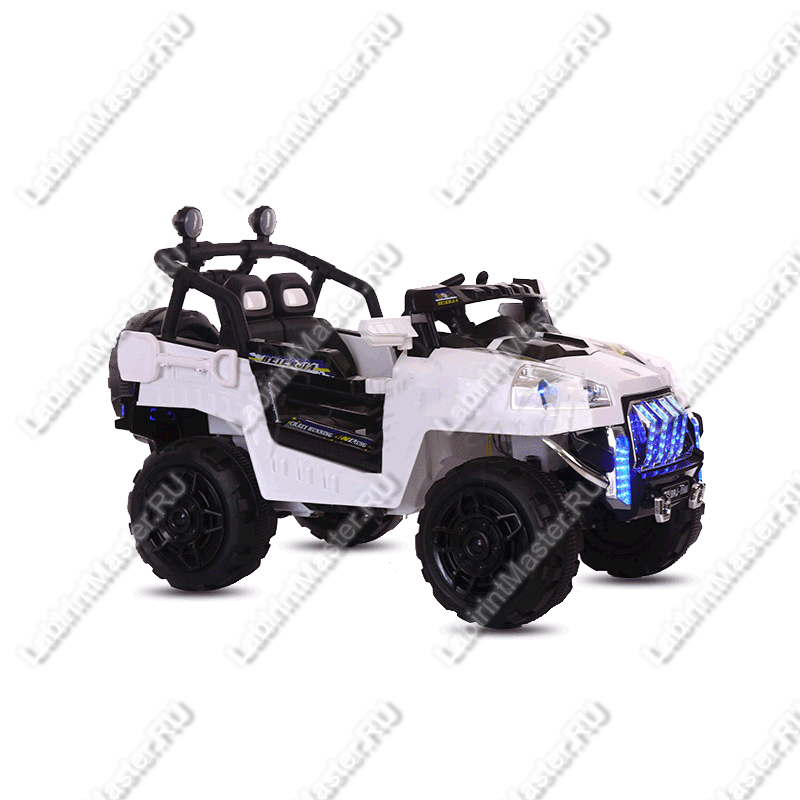 Сочетание белого и чёрного цвета отлично разделяет ходовую часть и салон электромобиля от кузова, что подчёркивает множественность деталей. Передняя часть машины - самая привлекательная, и «Beibei» не стал исключением. Ещё издалека ребёнок заметит сияющий голубыми огнями бампер. Сочетание огоньков и хромированных деталей создают потрясающий эффект. Помимо подсветки, фонарики есть и в фарах. Казалось бы, лучше и быть не может, но и это ещё не всё.