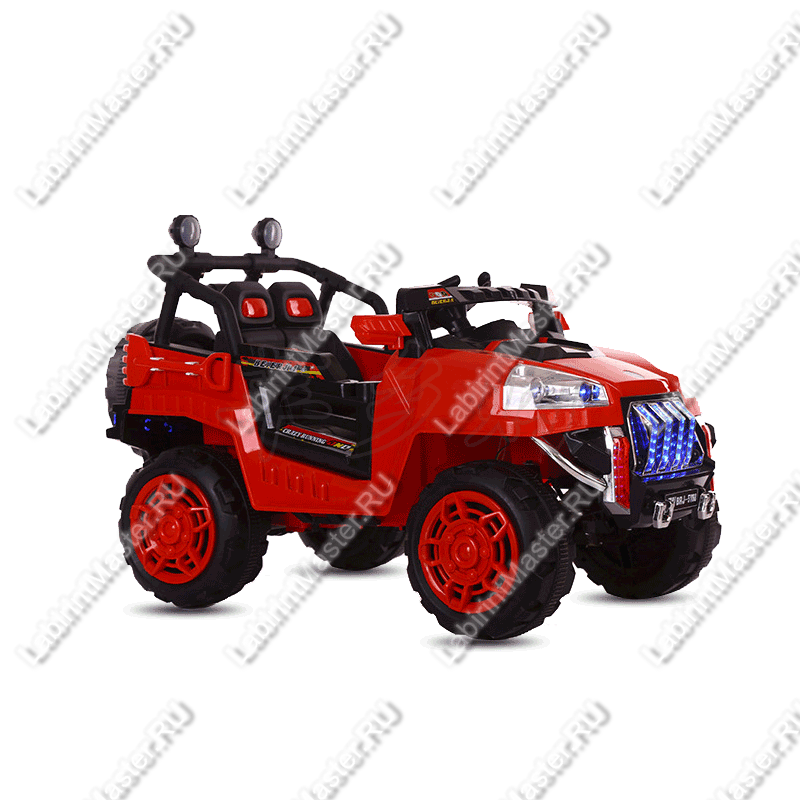 У электромобиля нет крыши, но это даже является плюсом, потому что это добавляет ему оригинальности. В салоне есть пара удобных кресел. Двое ребятишек без проблем смогут поместиться внутри салона и покататься вместе, ведь так будет гораздо веселее. У ребёнка без проблем получится маневрировать в разные стороны, тормозить или же давать газ.