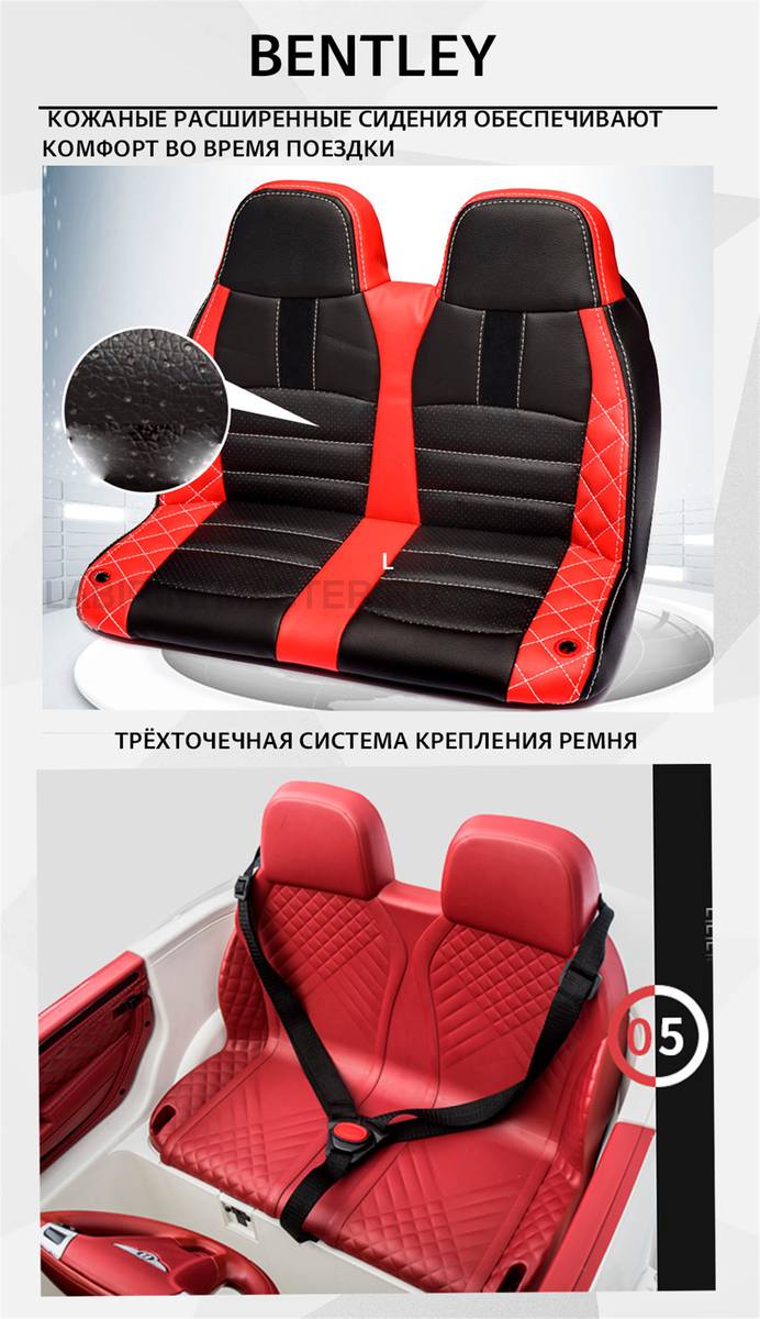 Детский электромобиль «Bentley» выполнен в красном цвете и отлично подойдет для девочек и мальчиков. Зеркала заднего вида сделаны так, чтобы малыш смог удобно припарковаться и следить за обстановкой сзади без искажения изображения в зеркале. Открывающиеся двери оснащены специальными защелкам внутри, для большей безопасности.