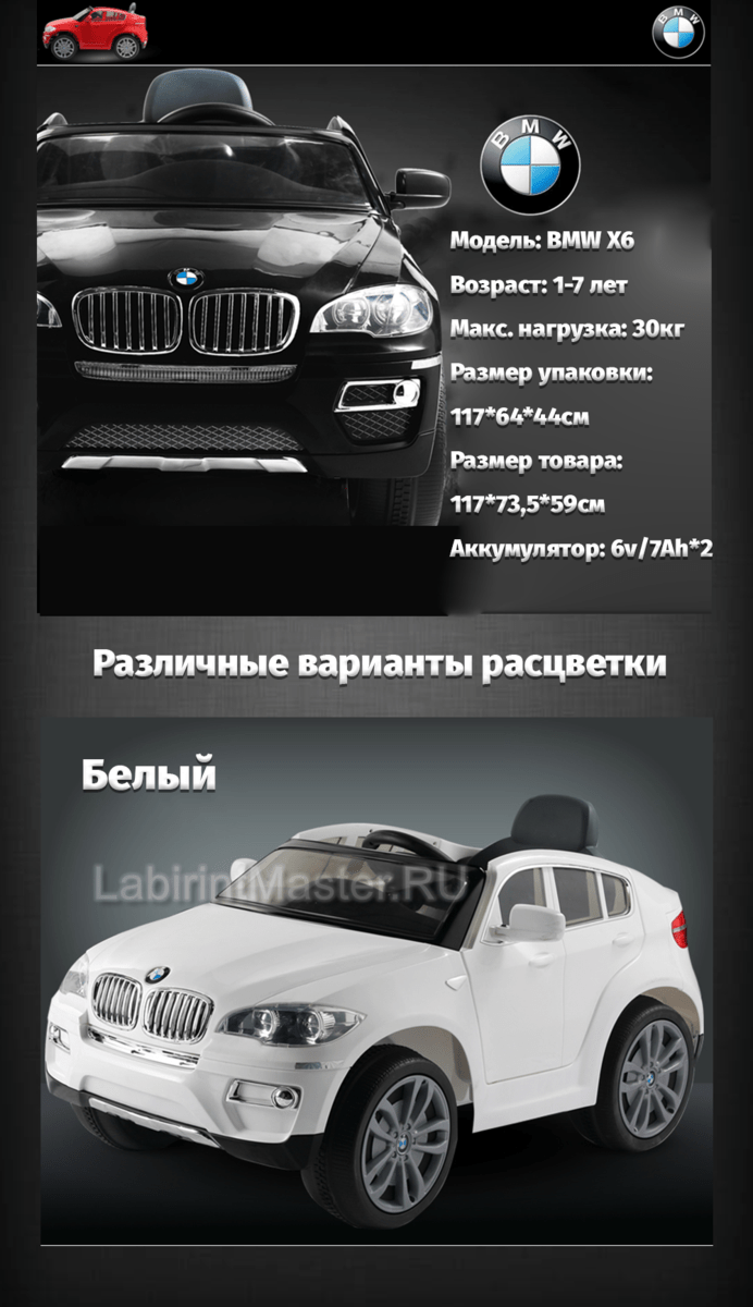 🛒 Детский электромобиль "BMW X6" 12V, черный купить за 0.0 ₽ | 🚚 Оплата при получении!