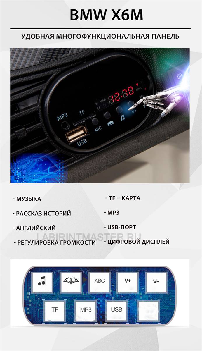 Детский электромобиль «BMW X6M» JJ2199 – как нельзя лучше подходит для заработка, причем круглогодично. Его легко сдавать в прокат в оживленном месте, к примеру, в гостинице, торговом центре или парке.