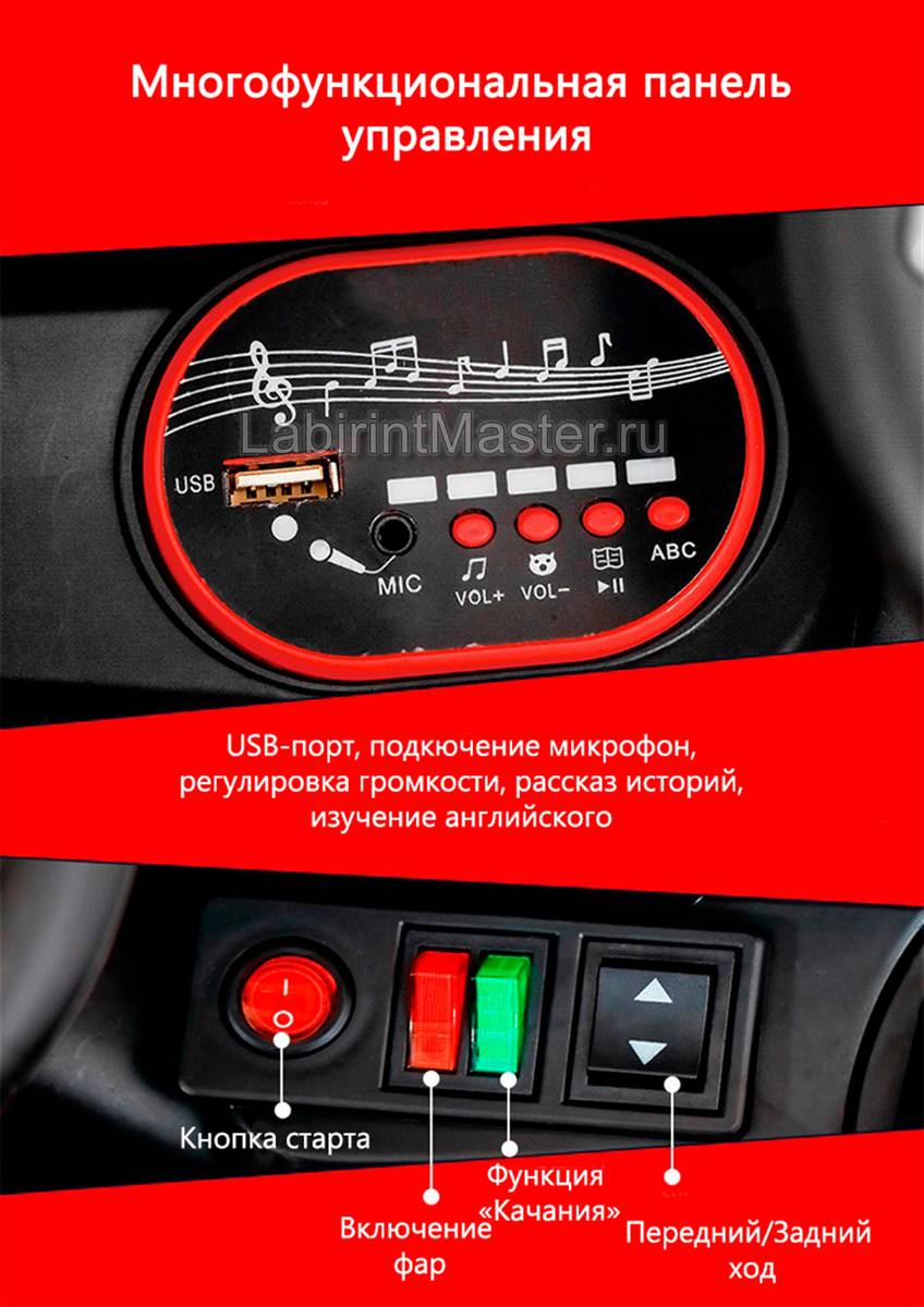 Этот одноместный автомобиль работает от аккумулятора и управляется почти как настоящая машина – рулевое колесо отвечает за повороты, педали заставляют машину двигаться назад или вперёд. Переживать о том, что юный гонщик сможет быстро от вас умчаться, не стоит, так как скорость машины не превышает быстрый шаг взрослого человека.